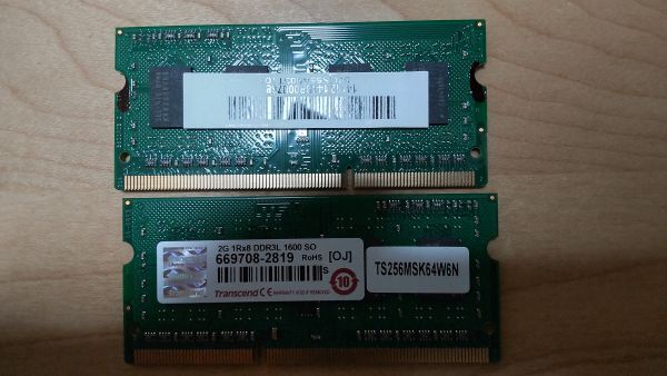 【メモリ】★2GB★1R×8★DDR3L 1600 SO 2枚★中古★