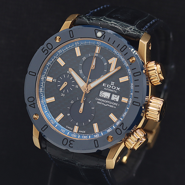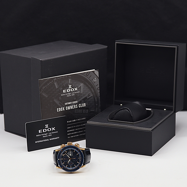 1円 保/箱付 稼働 エドックス CO-1 ブラック文字盤 腕時計 4438500 8ANT KTU
