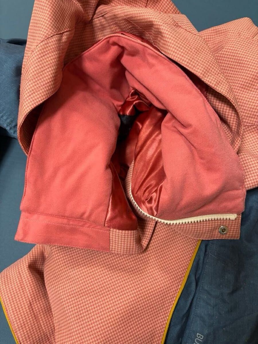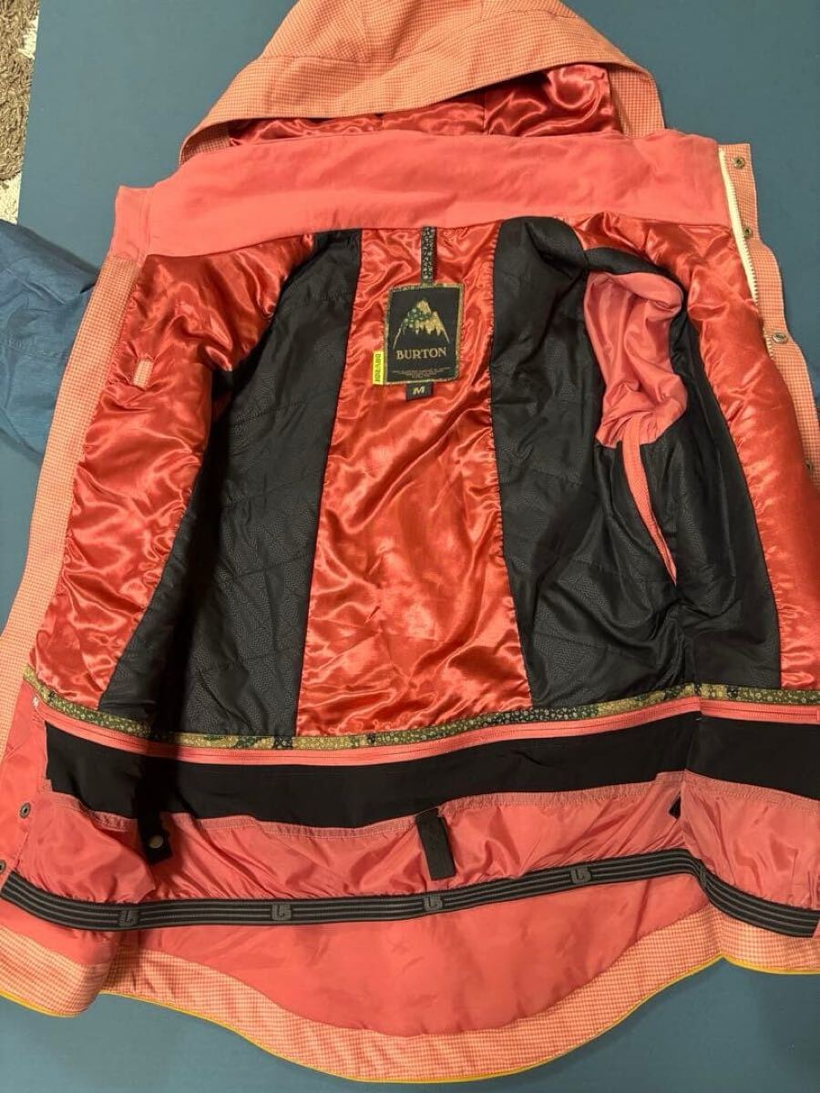 チケットホルダー2つ、ハンドゲイター、ウエストパウダーガード、ベンチレーション有り。