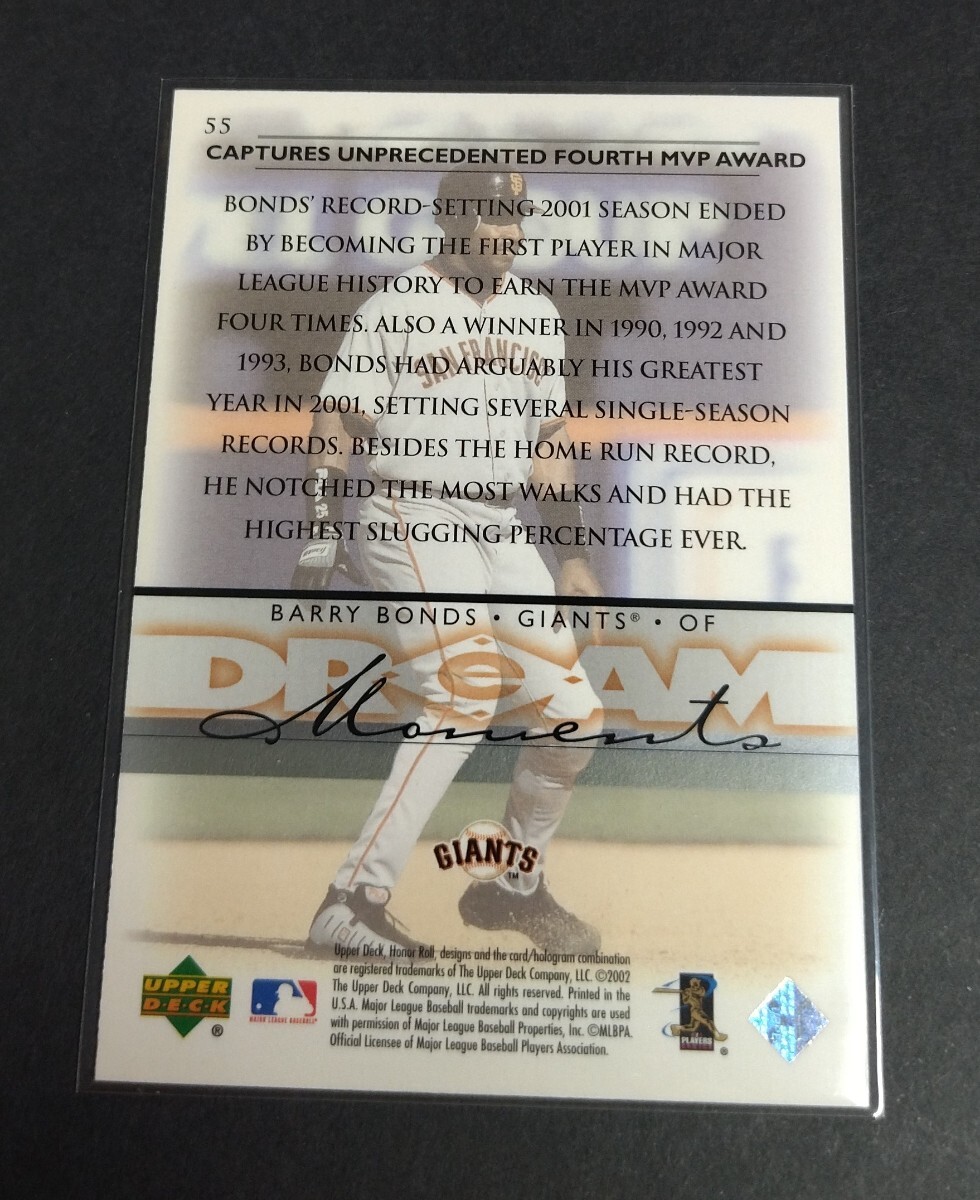 MLB 2002年upper deck バリー・ボンズ(ジャイアンツ) NL MVP AWARD No,55。Giants BARRY BONDS