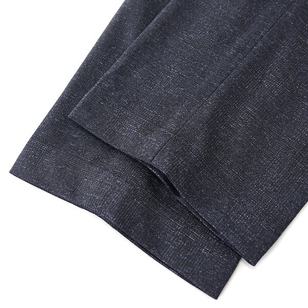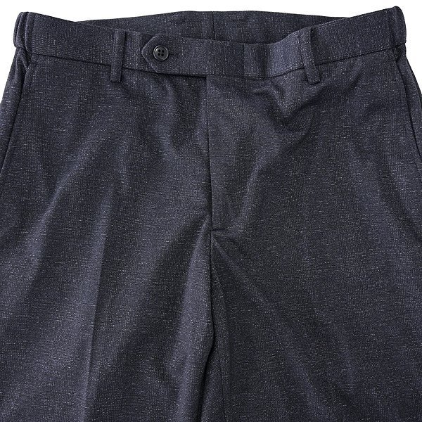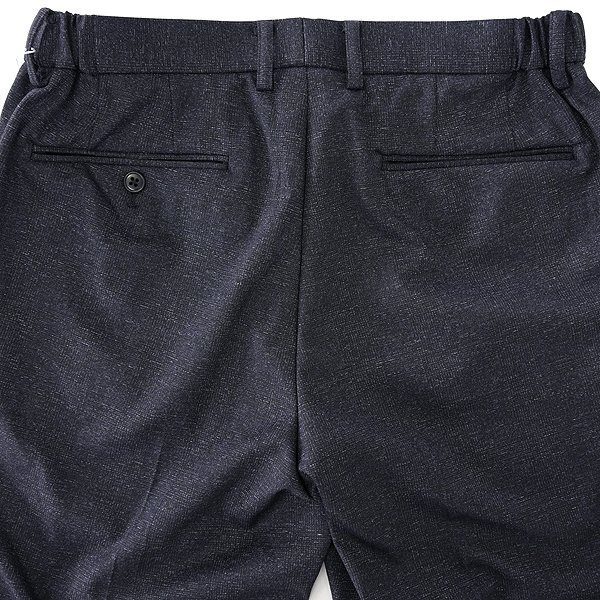 定番のウール見えジャージー素材のスラックスです。 程よい張り感のあるタテヨコストレッチの効いたジャージー素材に、ウール調のマテリアルプリントをすることで、きっちり見えするけど着疲れしない素材を採用しています。 すっきりとしたテーパードシルエットを採用し、ウエスト横のゴムシャーリング仕様により、いつでもジャストフィットな穿き心地に仕上がっています。 マテリアルプリントによって適度に表情があるので、ビジネススタイル以外にも合わせやすく、カジュアルな着こなしにも対応できて、オンにもオフにも活躍してくれます。 【デザイン】 ・ノータック ・ジッパーフライ ・テーパードシルエット ・ウエスト横にゴムシャーリング入り |