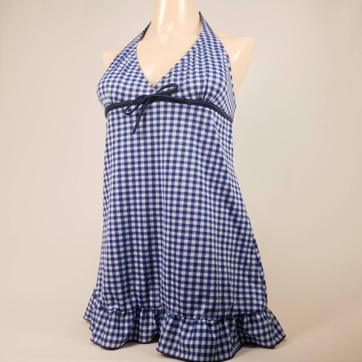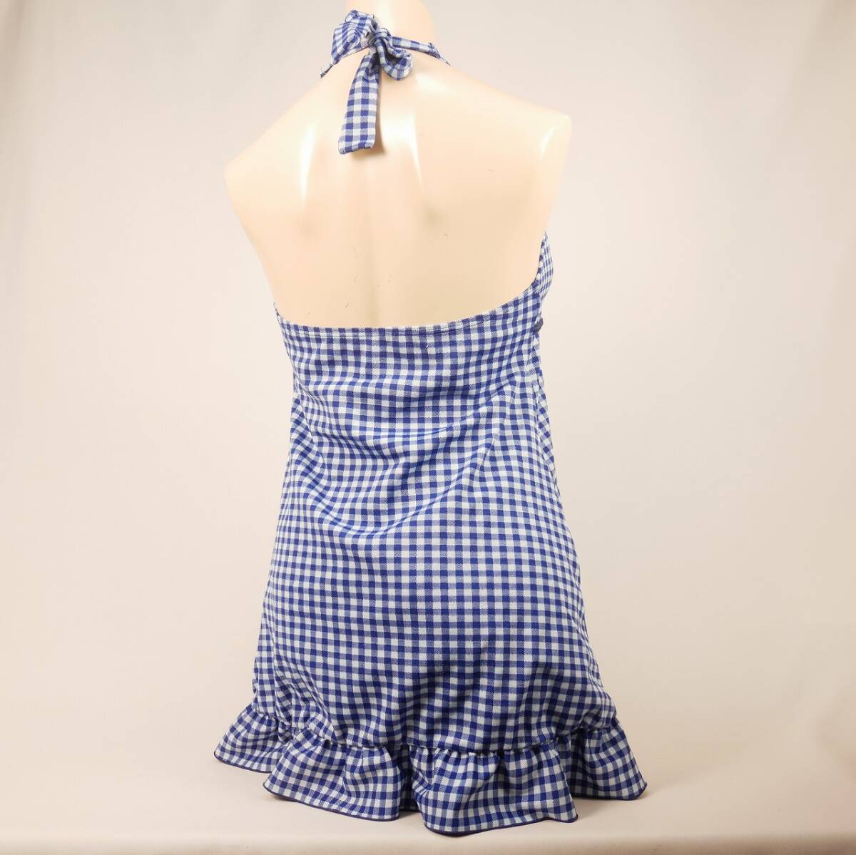 7973 レディース水着 チェック柄 ホルターネックタイプワンピース水着 11Lサイズ ブルー系 匿名配送