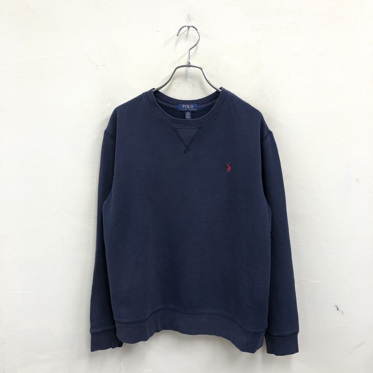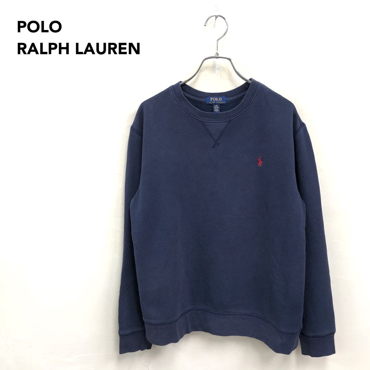 2O1517-Q-N◆POLO RALPH LAUREN ポロ ラルフローレン スウェット ロゴ刺繍 クルーネック トレーナー プルオーバー◆size L ネイビー 紺 綿