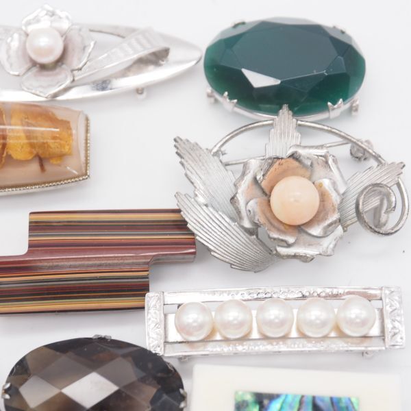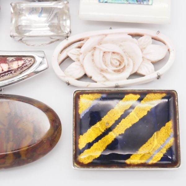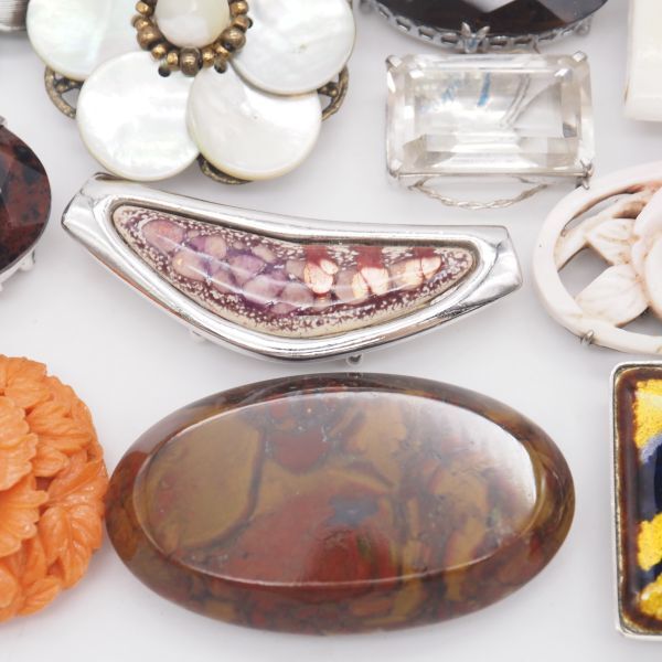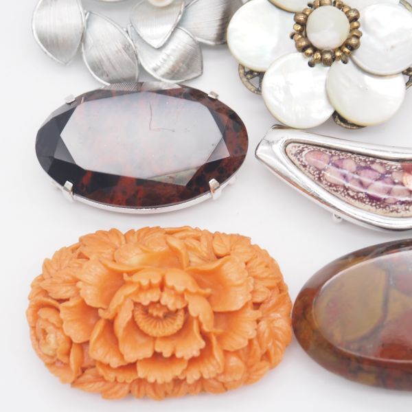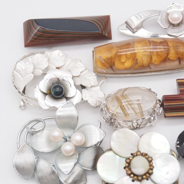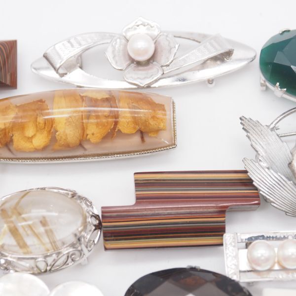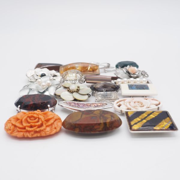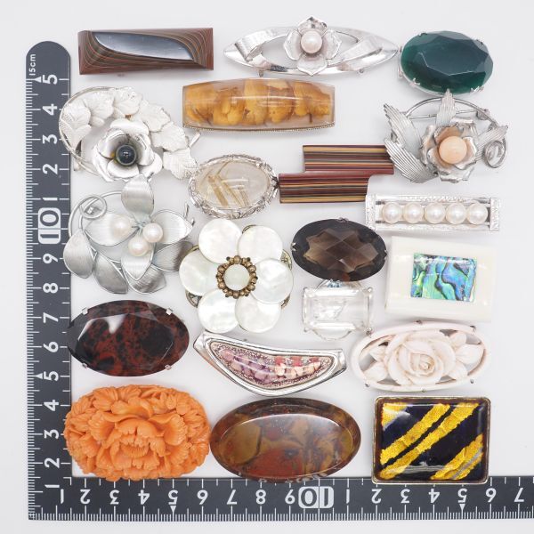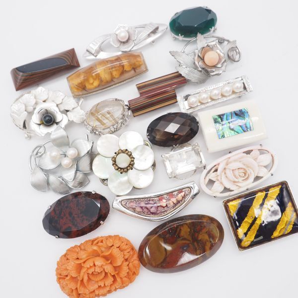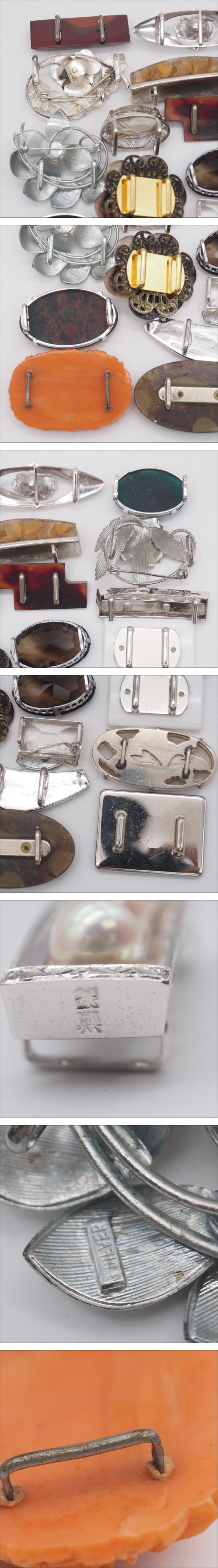 (WOB1002) 1円 帯留め 20個 大量セット 七宝 サンゴ 瑪瑙 メノウ 天然石 シルバー アンティーク 等 まとめて