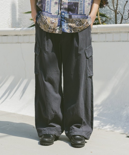 キーワード:カーゴパンツ メンズ ウエストゴム ストレート ハイウエスト フルレングス ワイドパンツ 無地