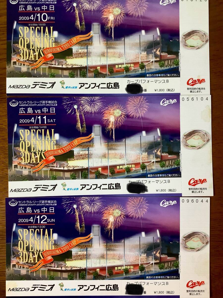 【未使用】2009年 マツダスタジアム開幕三連戦チケット 広島東洋カープ