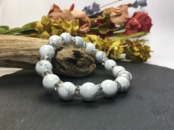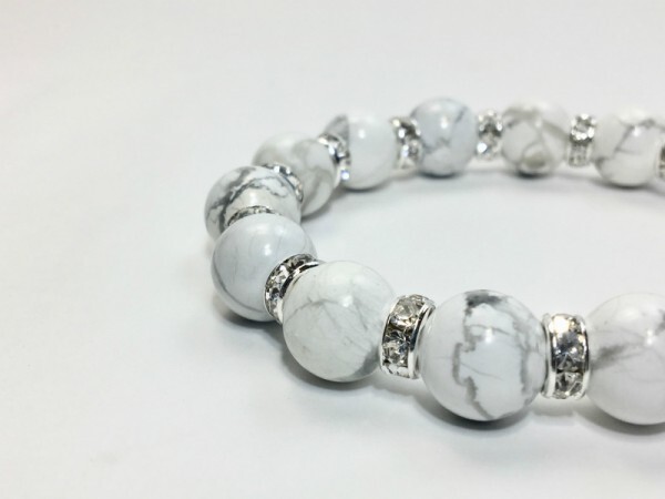 こちらは、12mm玉のハウライトを使用した天然石ブレスレットです。石との間にはロンデルを挟み高級感を演出しています。シンプルなデザインですのでどんなコーディネートとも合わせ易いブレスレットです。石大きさは12mm玉です。内径約18cmです。(サイズ変更の場合は取引ナビにてご連絡をお願いします。) 数に限りがございますので気になる方はお早めにどうぞ。