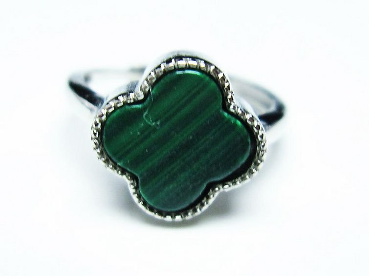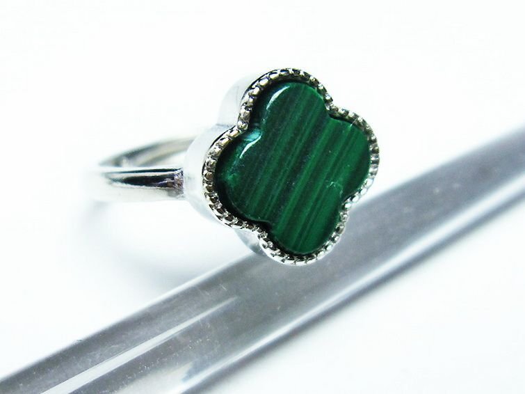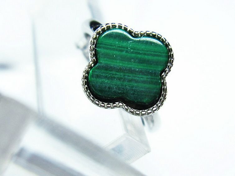 ■商品名: マラカイト指輪 ■商品ID: T290-1092 ■商品重量:約 2.8g ■商品サイズ:サイズ:13号 【マラカイト(孔雀石)】 孔雀の羽のような鮮やかな緑色と独自の縞模様を持つ天然石で、マラカイトは鮮やかかつ縞模様がくっきりと見えるものほど価値が高いとされています。 産地としてはロシアのウラル山脈にあるニジニ・タギリスクの銅鉱山が最も有名で、かつては日本でも秋田県にある荒川鉱山などで良質なマラカイトが産出されていました。 マラカイトの歴史は古く、古代エジプトでは紀元前3000年頃から顔料や化粧品の材料として用いられていたといわれています。 かの有名なクレオパトラも魔除けにマラカイトの粉末を油で溶いたものをアイシャドウとして使っていたという記録も残っています。 マラカイトは強い邪気払いのエネルギーを持ち、災いを事前に察知する能力を高めるとされているのでビジネス面でのお守りとして心強いサポートが得られるでしょう。 また精神と肉体の両方にヒーリング効果をもたらしてくれますので、ストレスで精神的に疲れてしまったり、しっかりとした休息が取れずに体力的に辛い時に身に着けることをおすすめします。 ⇒ マラカイトをもっと詳しく ◆ワンポイント情報 マラカイトは硬度が3.6~4と低いため衝撃を与えると割れてしまうので取り扱いには十分注意しましょう。 また、水分や塩分にも弱いので身に着けた後は柔らかい布で拭きとり、こまめにケアをするようにしてください。 |