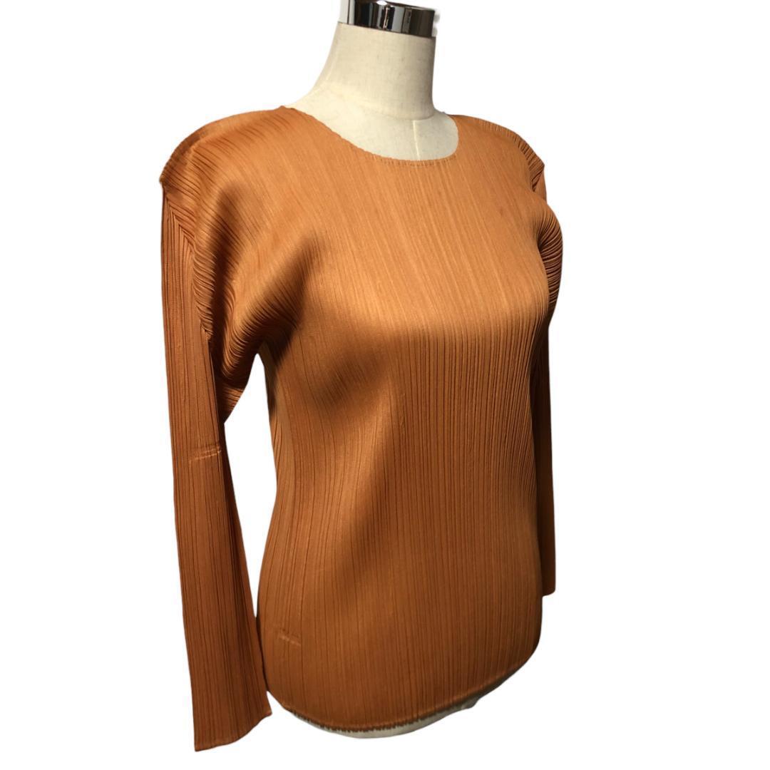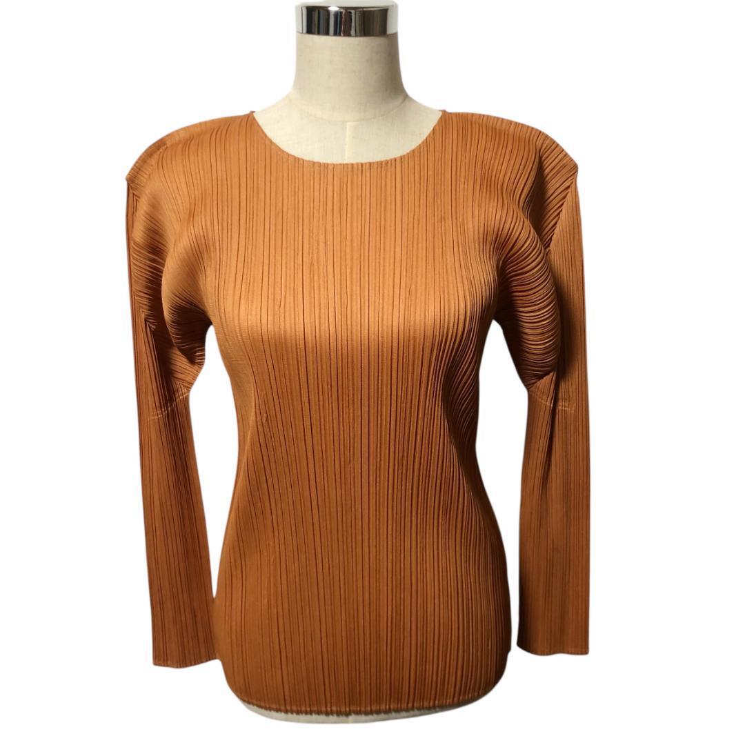 ISSEY MIYAKE イッセイミヤケ プリーツ カットソー 長袖 変形 M ブラウン 90s アーカイブ ヴィンテージ 日本製 レディース M12