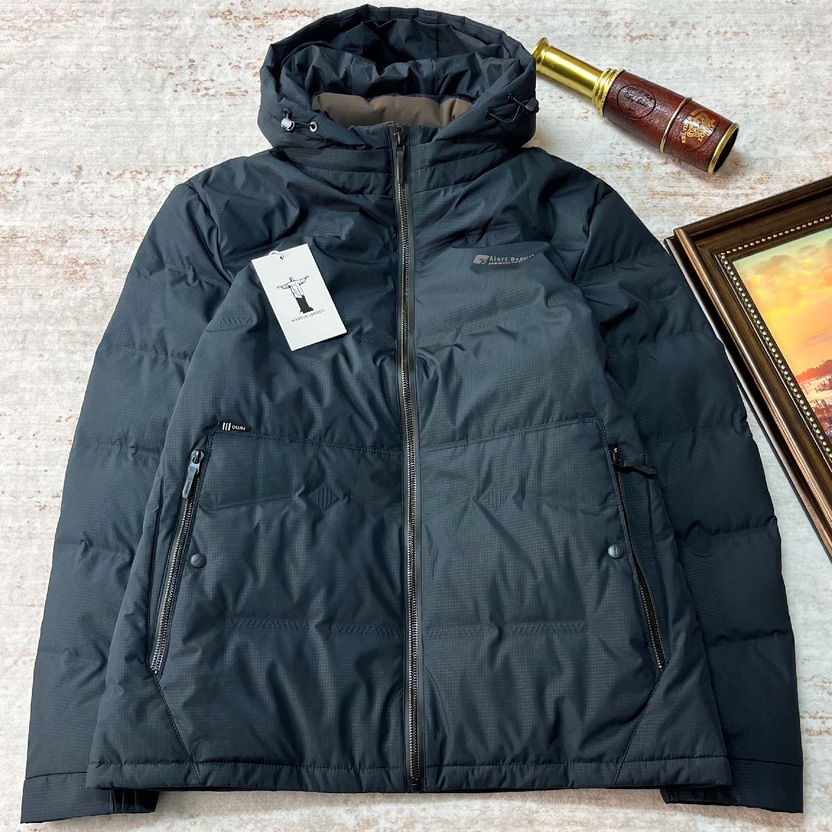 ダウンジャケット ロンドン製造 ダックダウン90% 高品質 ソフト 暖か 保温 ふんわり フード付き アウター ジャケット メンズ 秋冬 SIZE:L