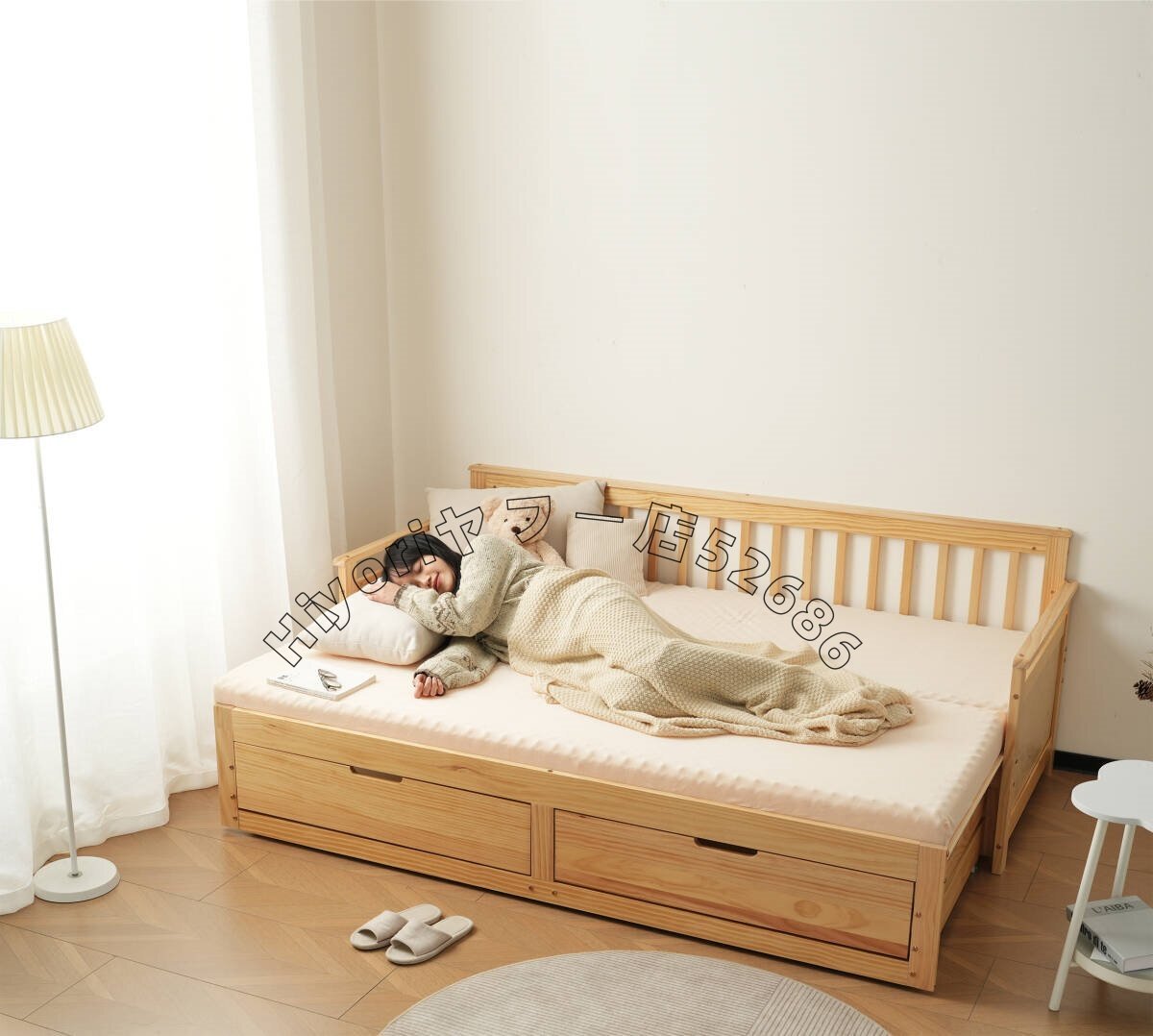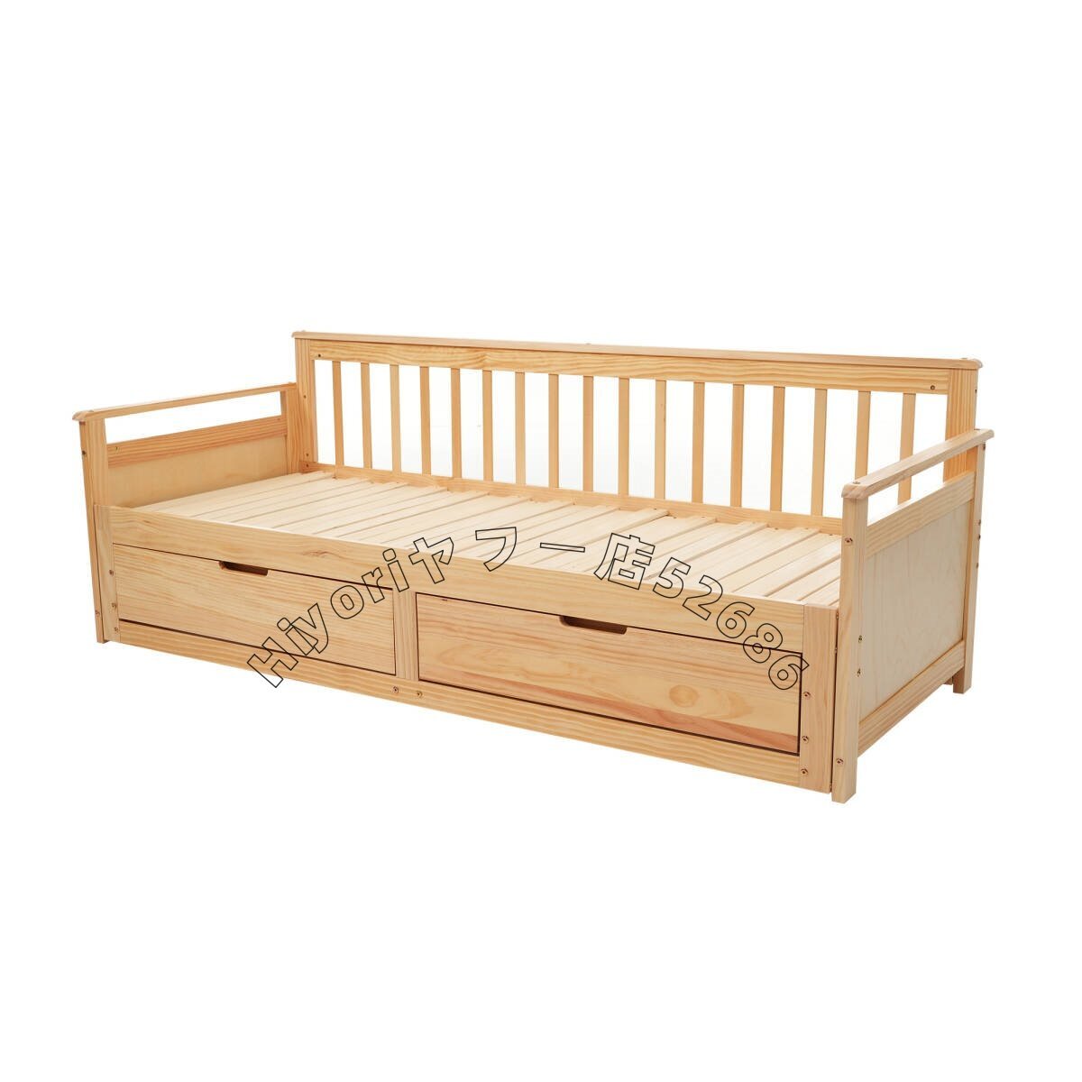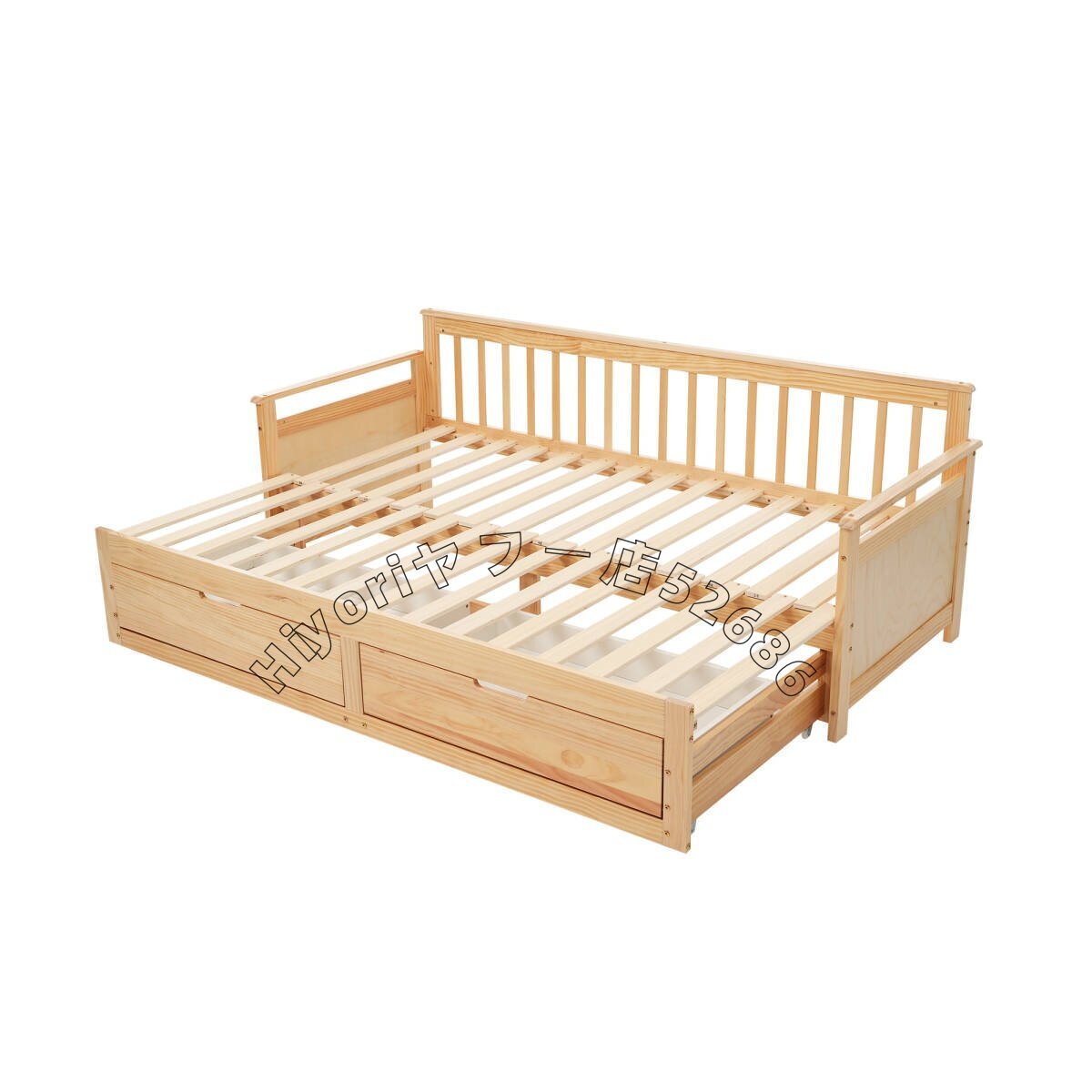 【翌日発送】ソファベッド ディベッド 伸長式ベッド 木製 引き出し付き 収納付き おしゃれ 2way 天然木 パイン材 すのこ仕様【ナチュラル】