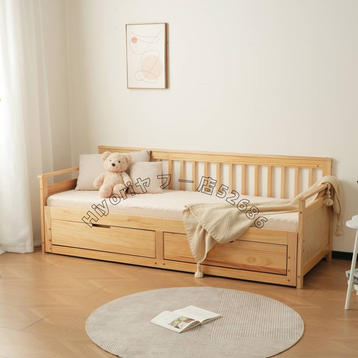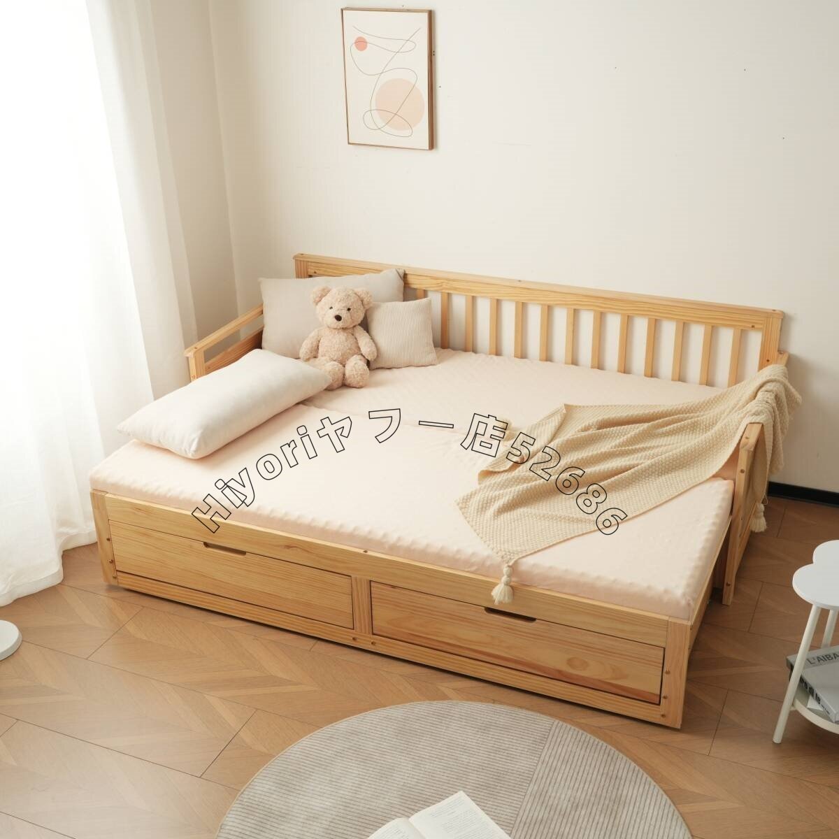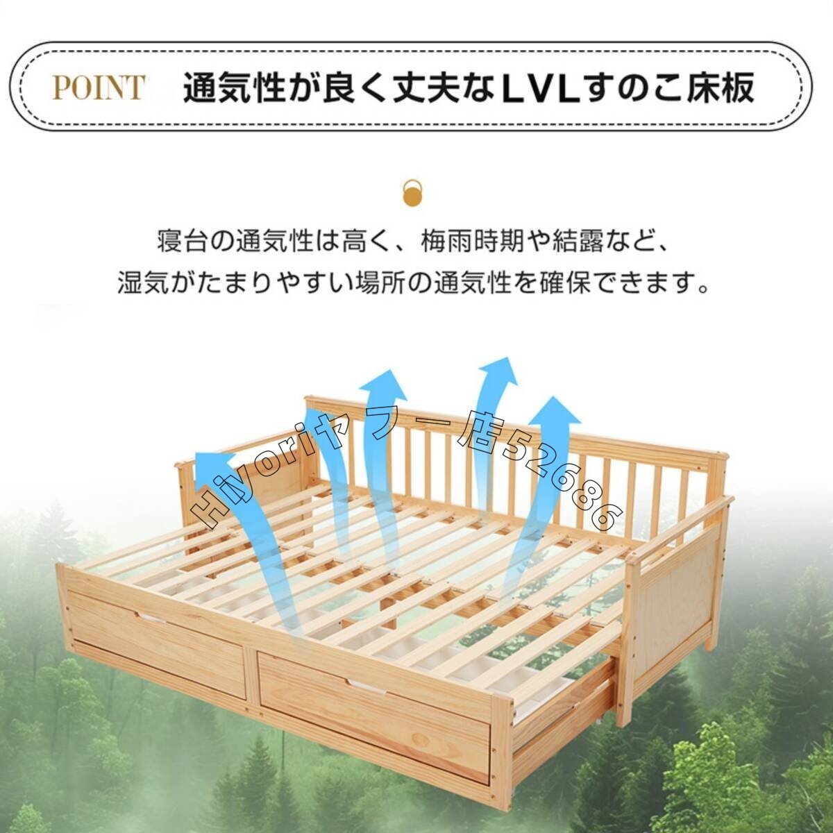 【翌日発送】ソファベッド ディベッド 伸長式ベッド 木製 引き出し付き 収納付き おしゃれ 2way 天然木 パイン材 すのこ仕様【ナチュラル】