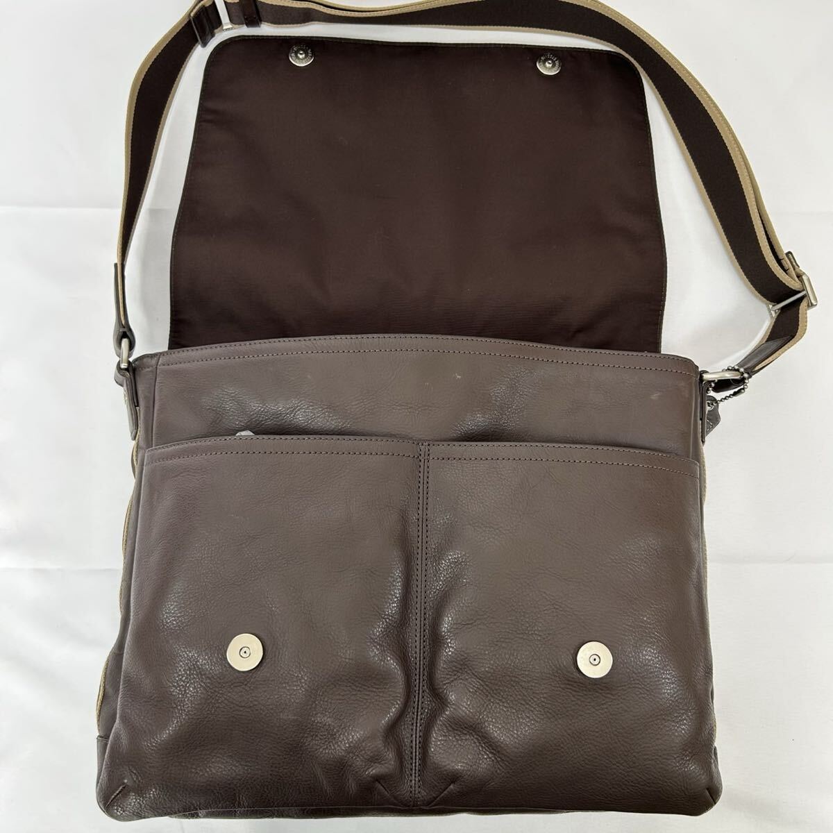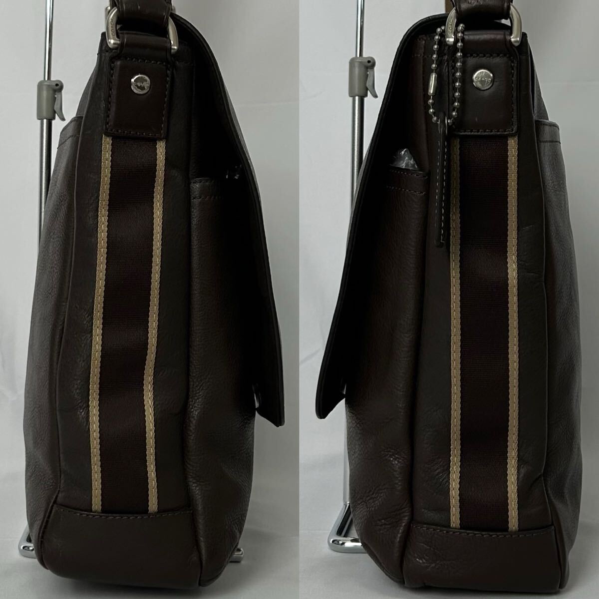 【入手困難品/極美品】コーチ COACH ヘリテージ ウェブ ショルダーバッグ ビジネスバッグ メッセンジャーバッグ レザー A4可 カラーライン