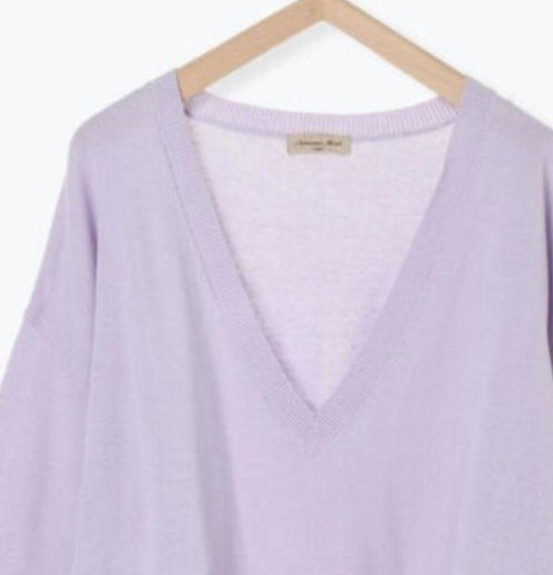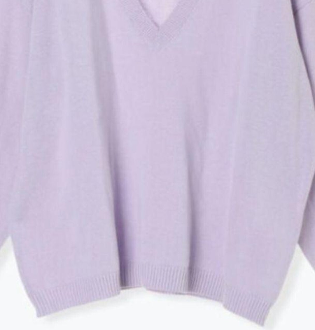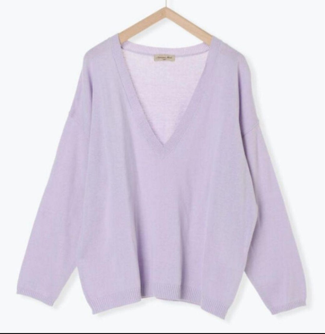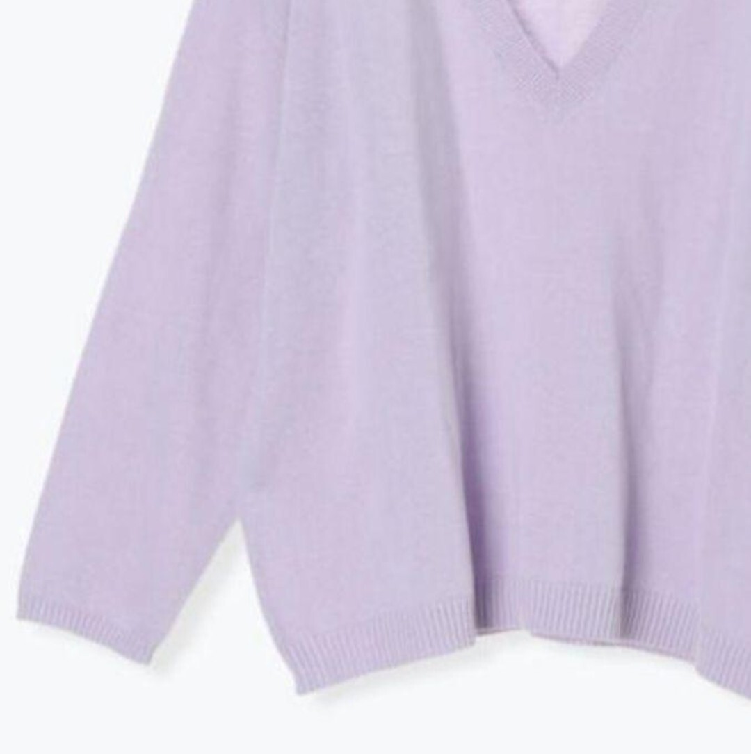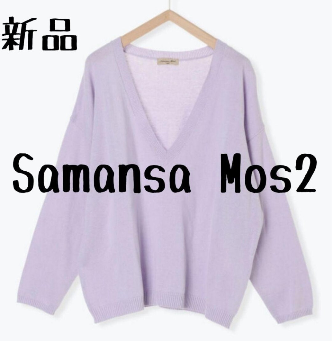 新品 Samansa Mos2 コットンVネックニットプルオーバー パープル レディース 春秋 長袖 ナチュラル ゆったり