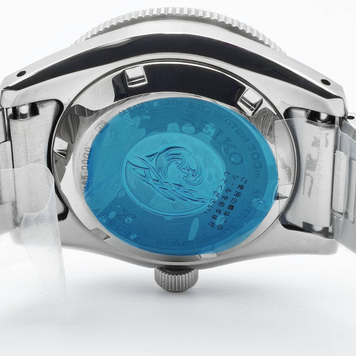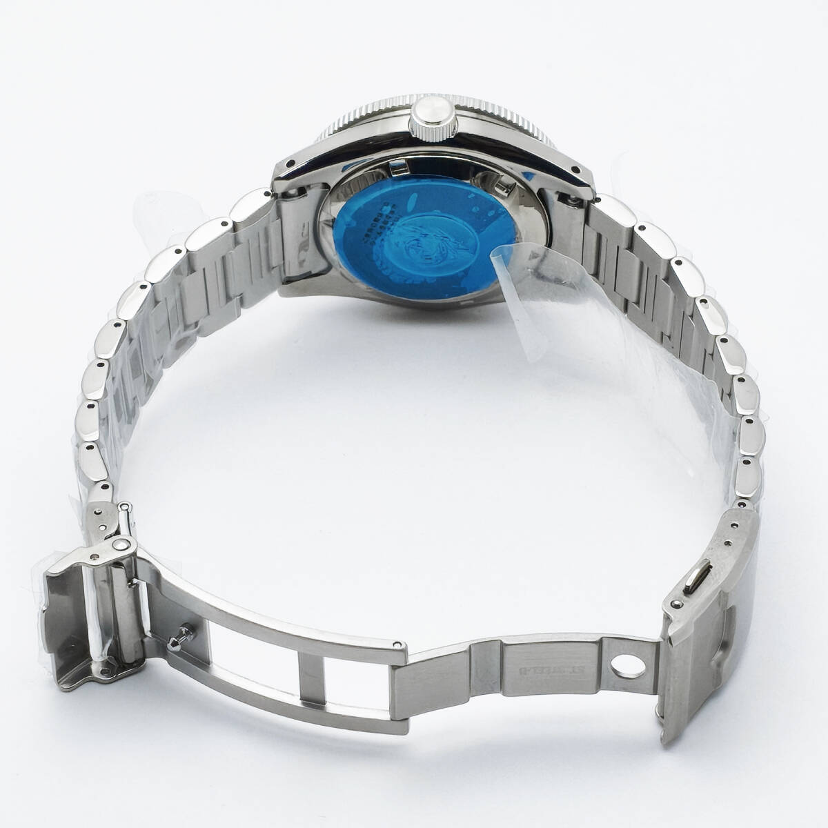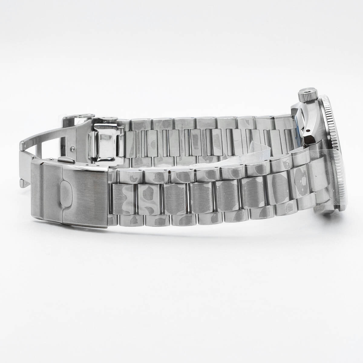 仕様:300m空気潜水用防水、逆回転防止ベゼル、ねじロック式りゅうず、ダブルロック中留、スクリューバック