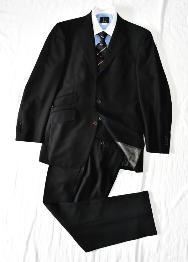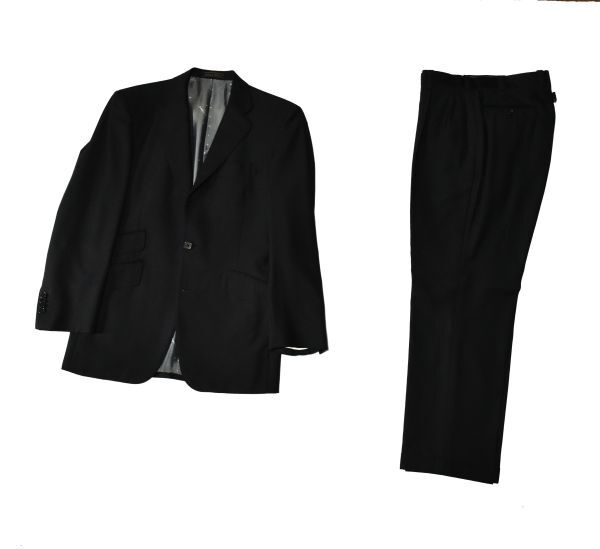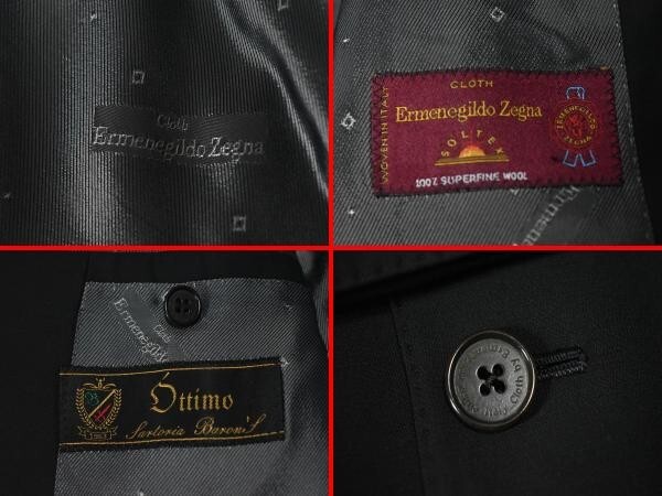 268★Ermenegildo Zegna SOLTEX★ゼニア×SARTORIA★高級光沢感ブラック黒#本切羽ディティール極上仕立ての着心地良い高級シングルスーツM
