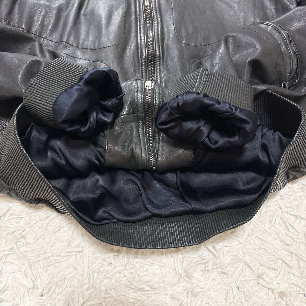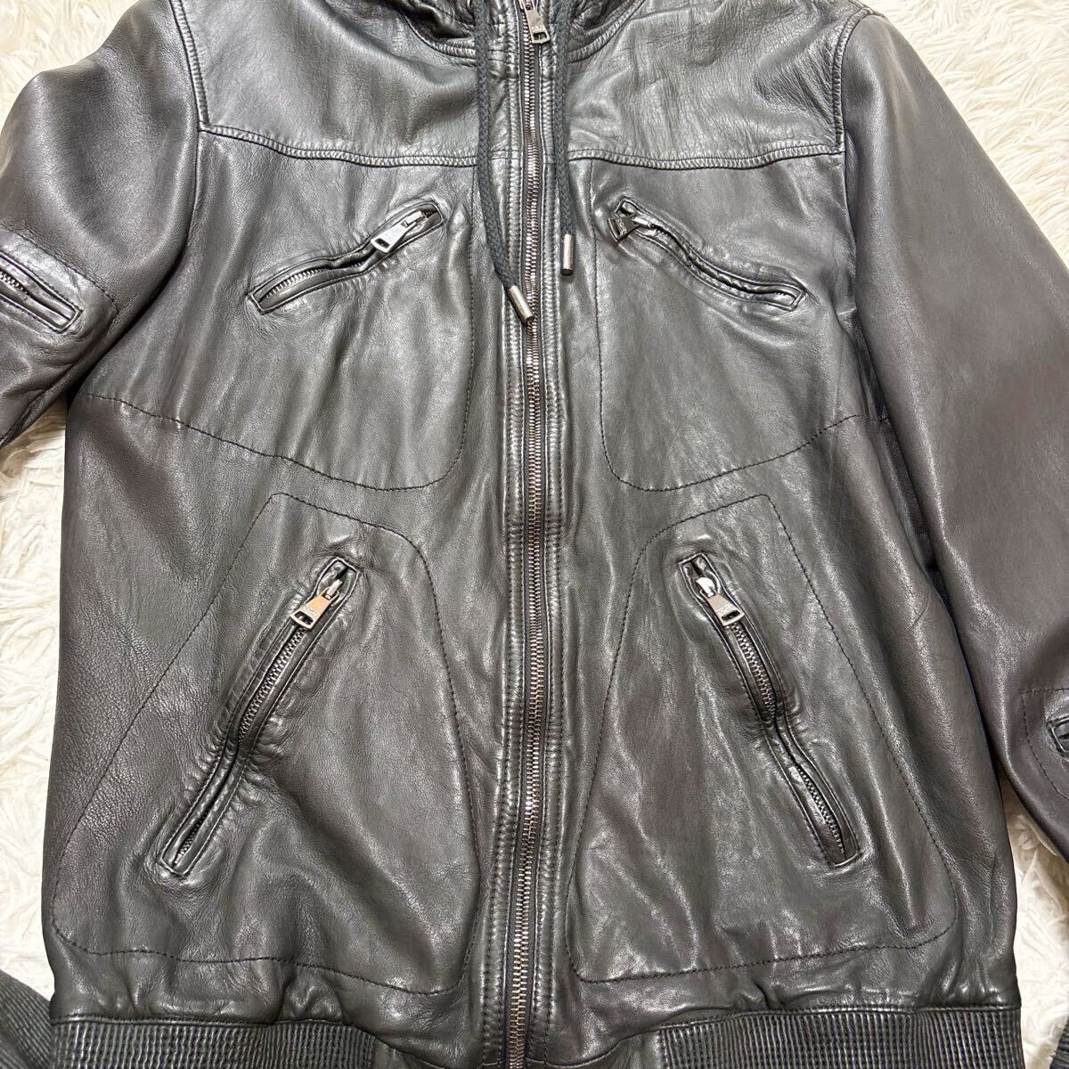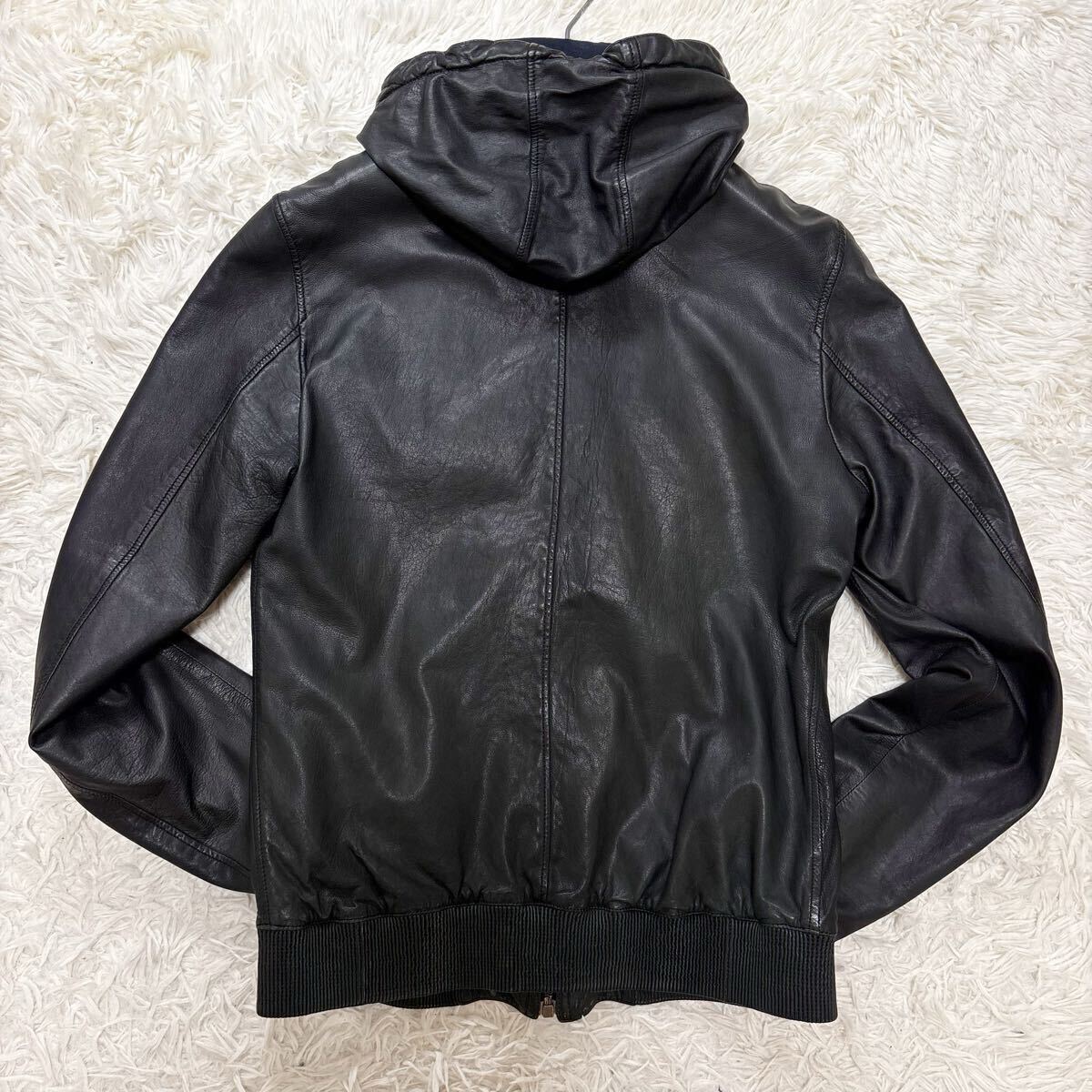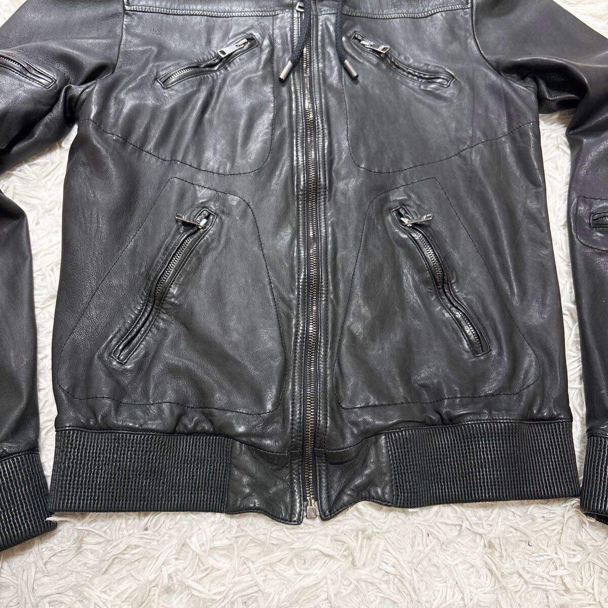 希少 XL相当 ドルチェ&ガッバーナ ラムレザー パーカー 八の字ZIP レザージャケット ブルゾン ブラック 羊革 ドルガバ 50 DOLCE&GABBANA