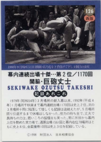 ★トレカ★BBM98大相撲西版【#126 巨砲丈士】★