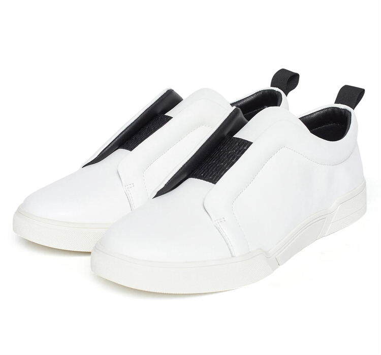 ■シンプルなスリッポンデザインに幾何学柄のラバーバンドを搭載し、本革の上品な表情とマッチした大人の一足。