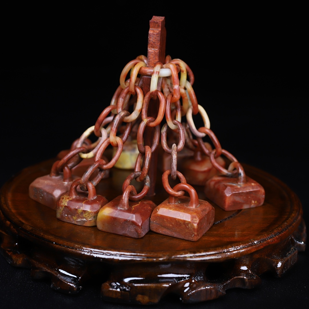 *珍品旧蔵* 【中国近現代篆刻家 齊白石】寿山石 九鎖印鑑セット 置物 天然石 手彫 篆刻 古印材 文房具 極細工 中国古玩 骨董品 古美味 H410