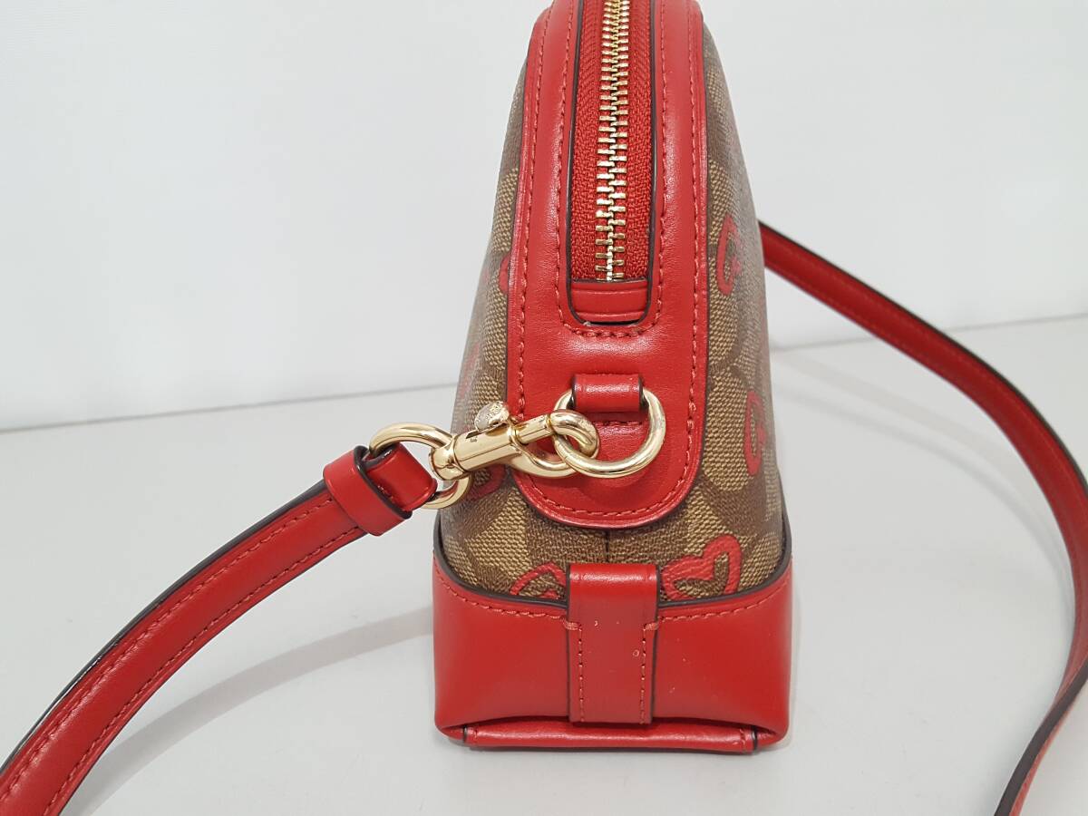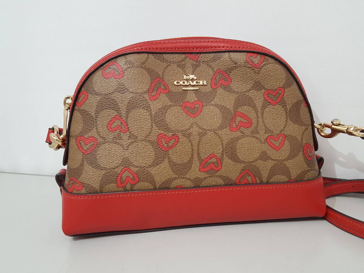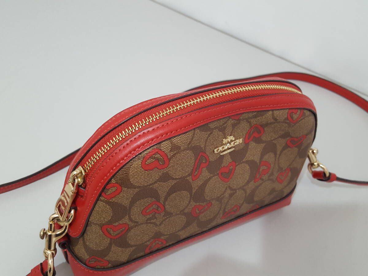 ※離島など別途中継手数料がかかる地域が御座います。 その場合はお振込みを追加でお願いする場合が御座います事、 事前にご了承の程、宜しくお願い致します。 ※送料には業者指定された運送用梱包資材代が含まれます。 専用BOX、段ボール梱包以外での補償は対象外となります。 [商品名] 1円スタート 【美品】COACH コーチ シグネチャー ハート ショルダーバッグ 91015 [サイズ] 高さ約17cm, 横約23cm, マチ約6cm, ショルダー長さ約120-138cm [素材] 本革レザー×PVC他 [カラー] ブラウン系×レッド系 [仕様] ファスナー開閉仕様 フリーポケット×1 [状態] 右サイド下部に薄い汚れ、 金属部分にキズ、メッキハガレ箇所が御座いますが、 その他は殆ど傷み無い美品です。