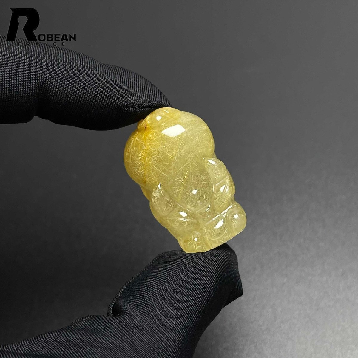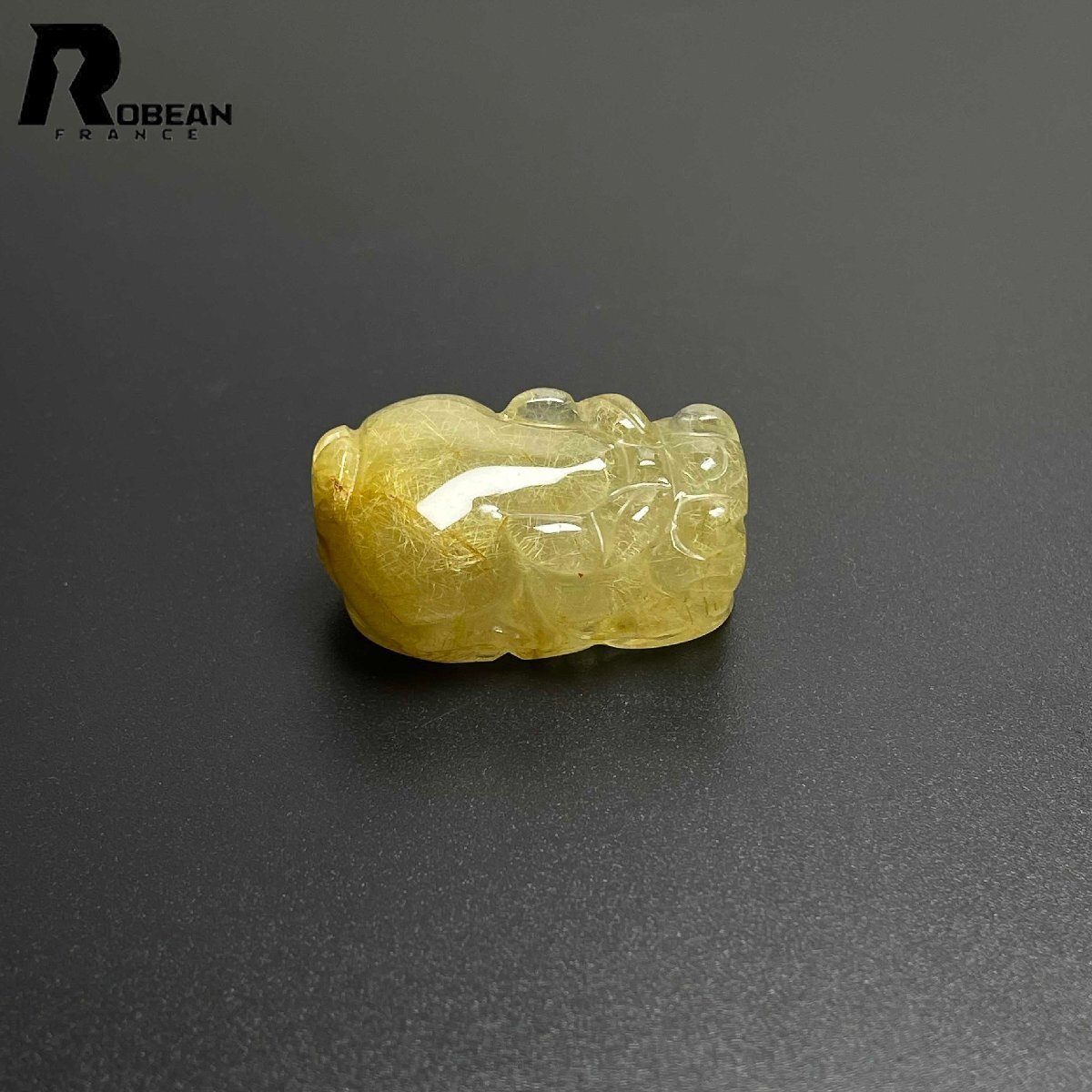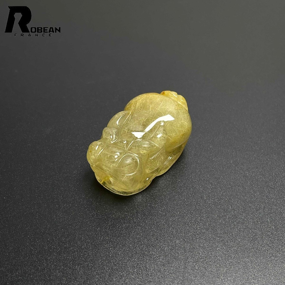 上級 EU製 定価9万円★ROBEAN・タイチンルチル・貔貅★黄金針水晶 ゴールド アクセサリー 天然石 金運 穴開け 30*19.1*13.9mm
