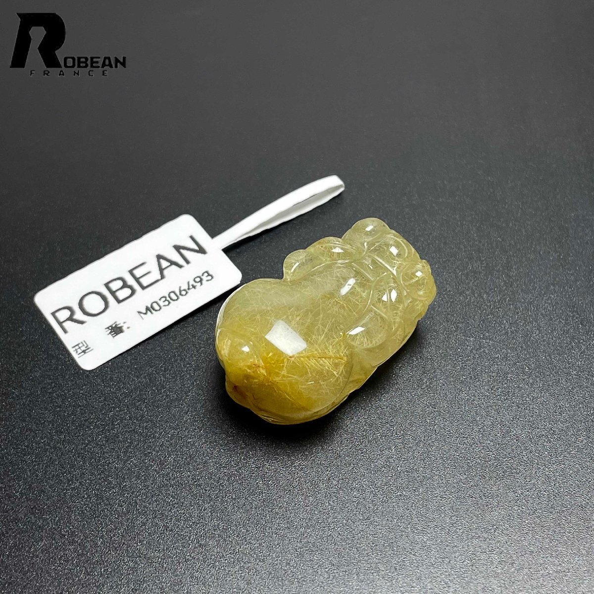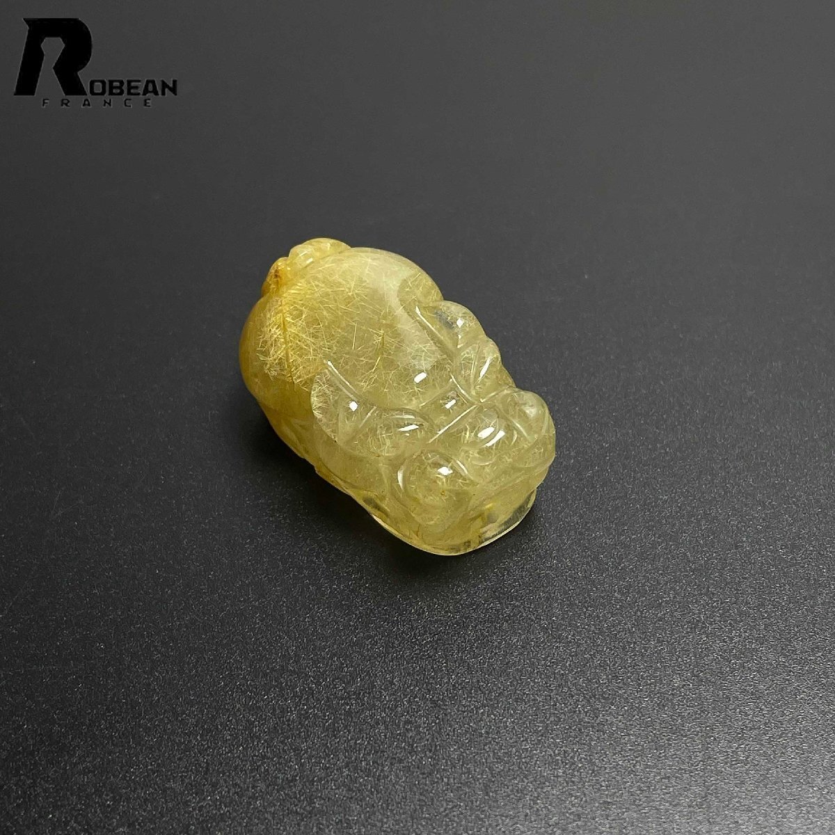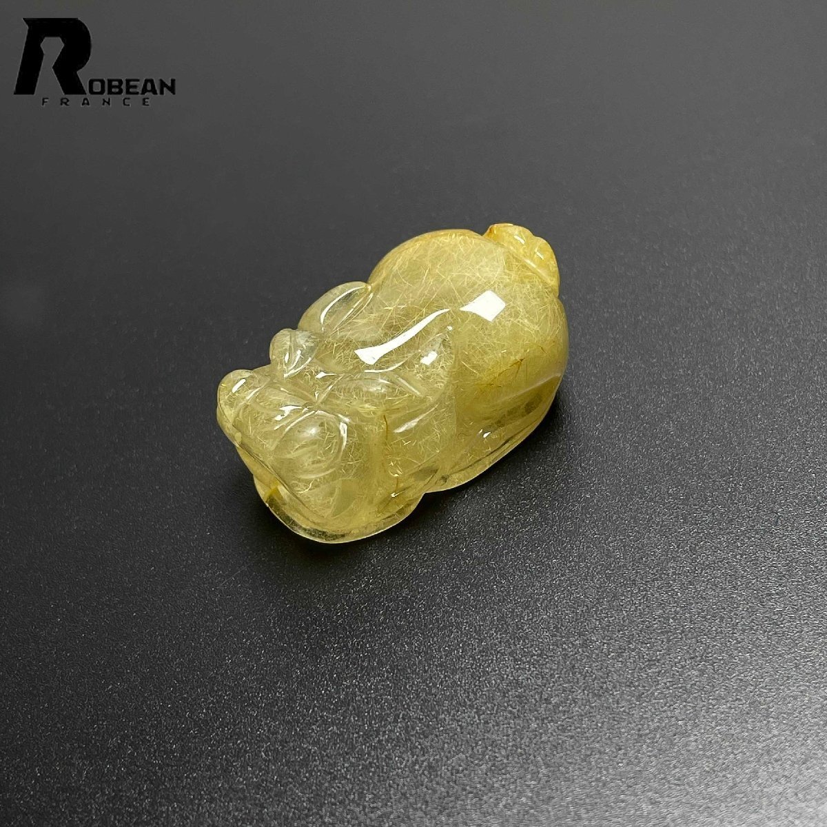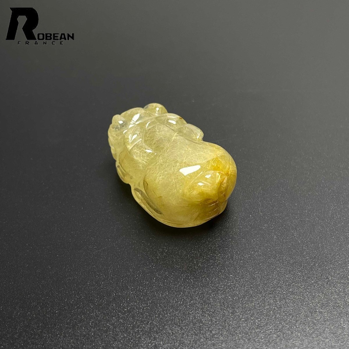 上級 EU製 定価9万円★ROBEAN・タイチンルチル・貔貅★黄金針水晶 ゴールド アクセサリー 天然石 金運 穴開け 30*19.1*13.9mm M0306493