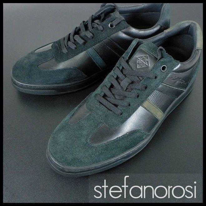 未使用 訳有 1円~ ステファノロッシ 天然レザー スニーカー 黒 26.5-27cm ALCE COLORATO stefano rossi UOMOメンズ【4659】