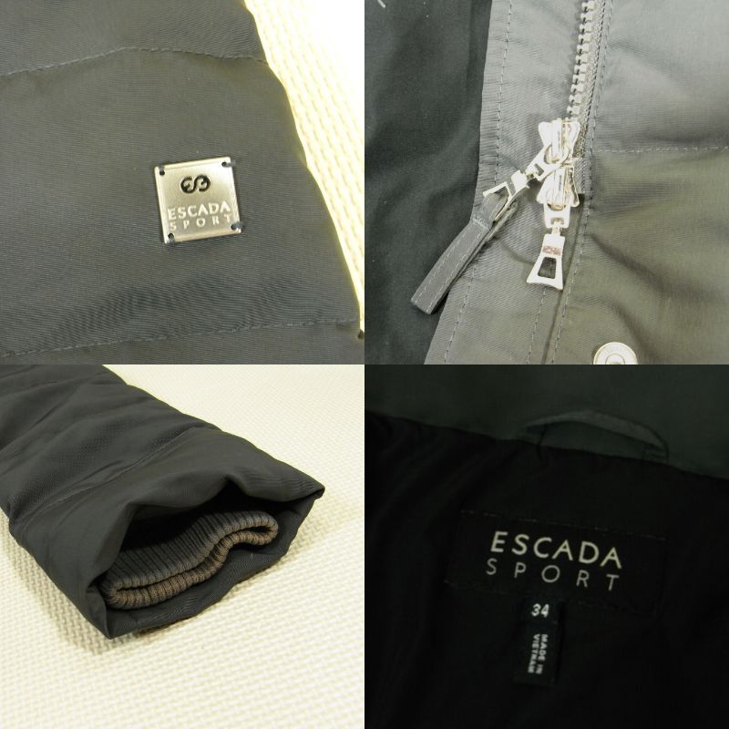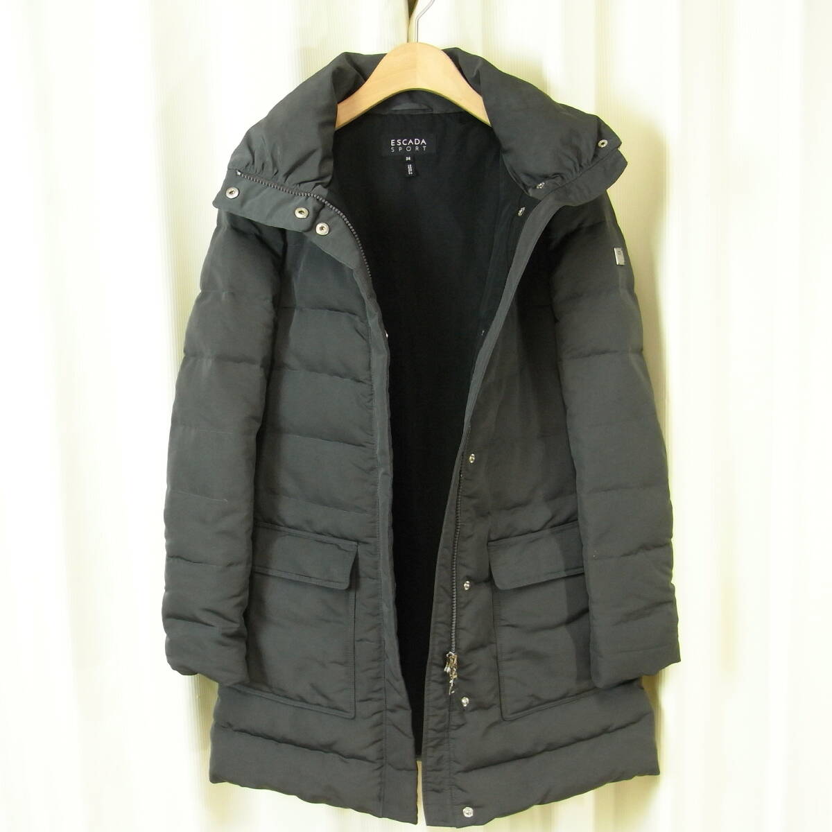 | ESCADA SPORT エスカーダスポーツ サイズ34 155/80A ダウンジャケット 濃いグレー シンプルな形のダウンジャケットです。 合わせやすい濃いグレーのお色です。 中綿入りで袖は二重になっています。 暖かく着ていただけると思います。 ベルト付き。 付属のフードはありません。 写真で分かりにくいですが、表面に少々細かなスレがあります。 またタグがなく詳しい素材は不明ですが、中綿入りで、表面はおそらくナイロン素材かと思います。 ご理解いただける方の購入をお待ちしております。 丈:約80センチ 肩幅:約40センチ 身幅:約53センチ(脇の下) 袖丈:約53センチ | ||