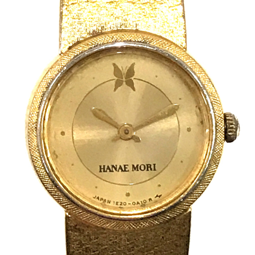 ハナエモリ クォーツ 腕時計 レディース ゴールドカラー文字盤 1E20-0A10 未稼働品 純正ブレス HANAE MORI |