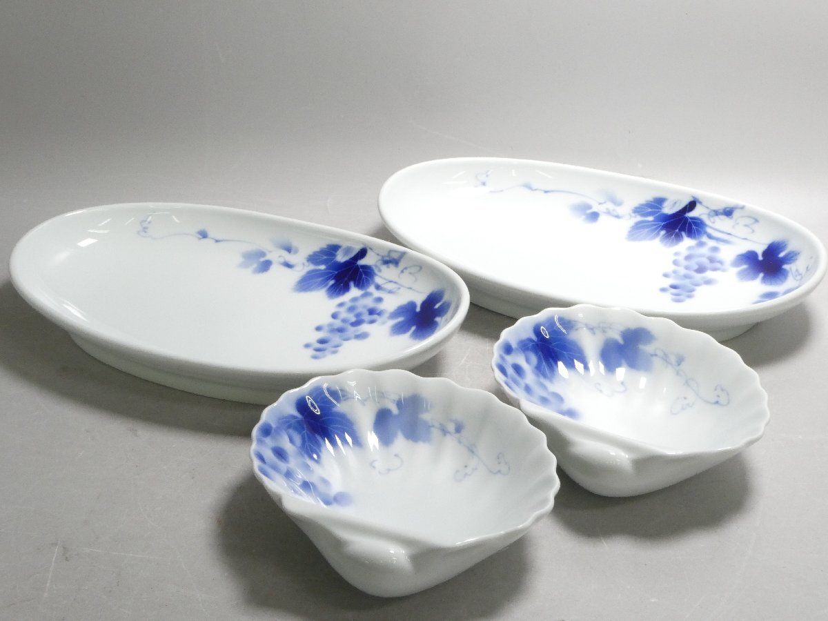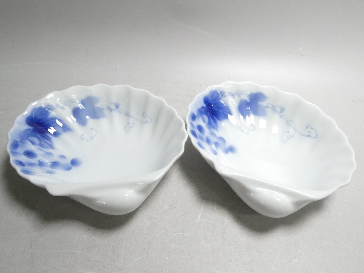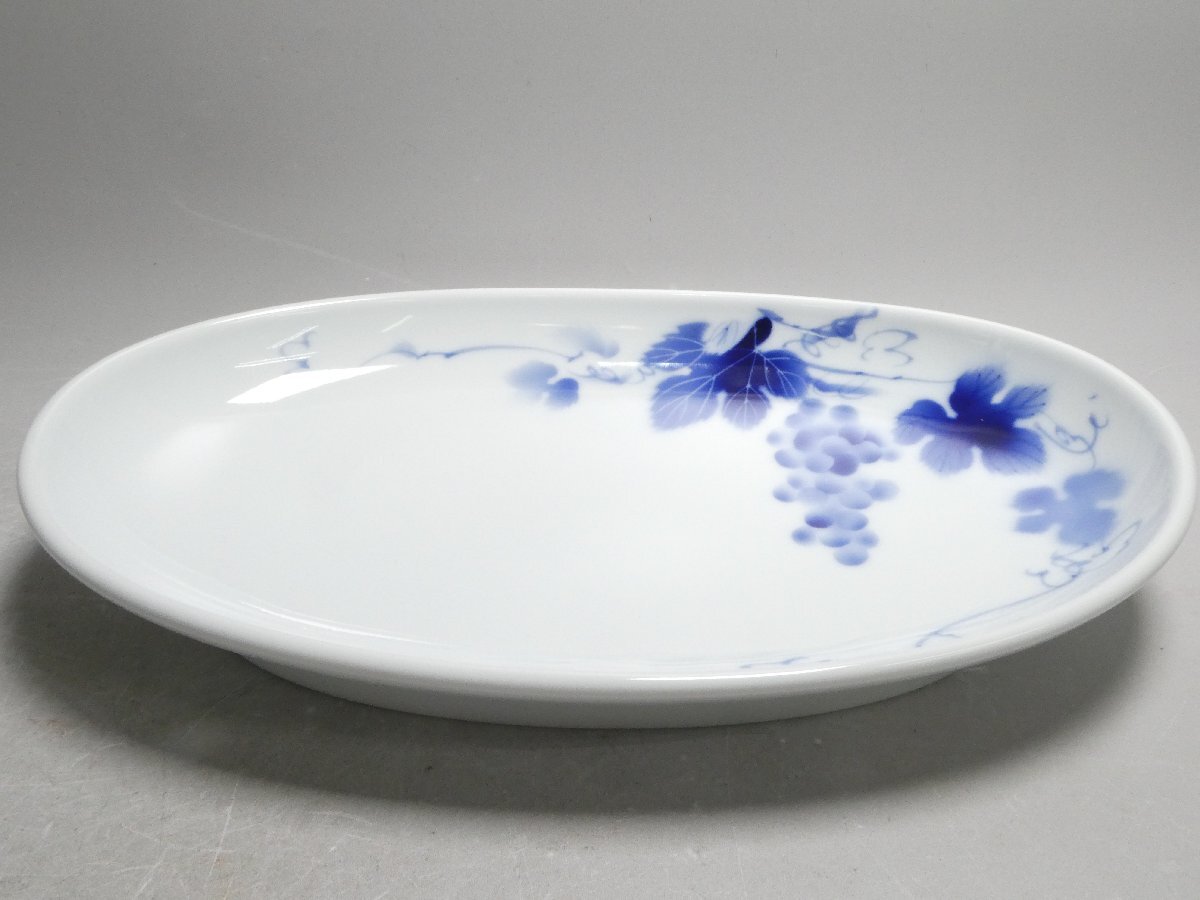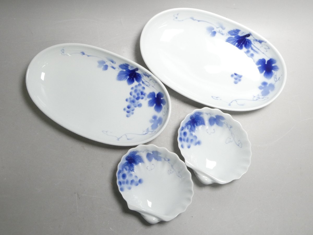101001 深川製磁 ブルーワイナリー 楕円皿 貝形皿 プレート 二客 和食器 箱付