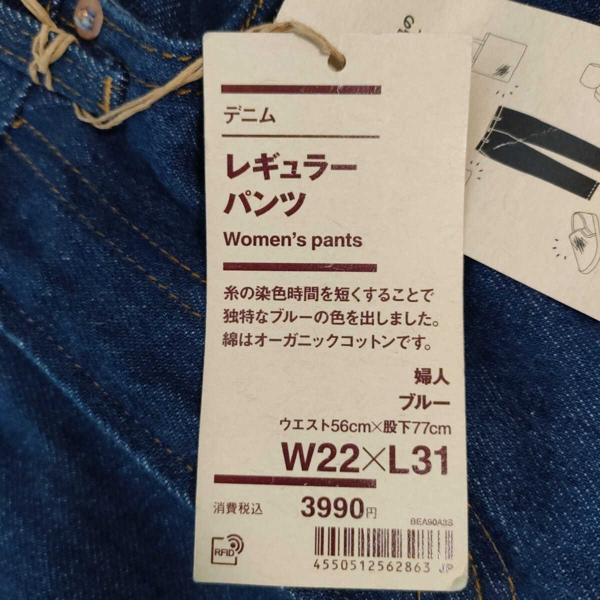 新品タグ付未使用品 無印良品デニムレディースパンツ コットン100%(Sサイズ)送料無料・匿名配送