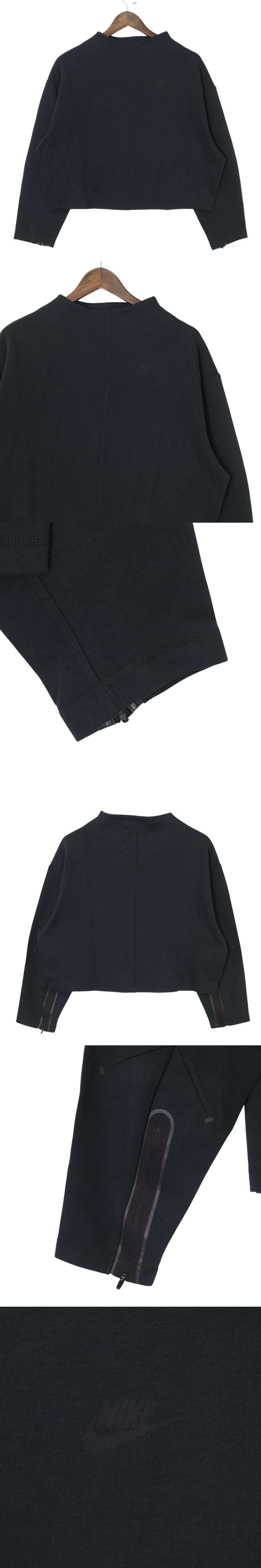 NIKE ナイキ ロゴ★ 袖ジップ モックネック クロップド トレーナー プルオーバー Sz.M レディース 黒 トレーニング
