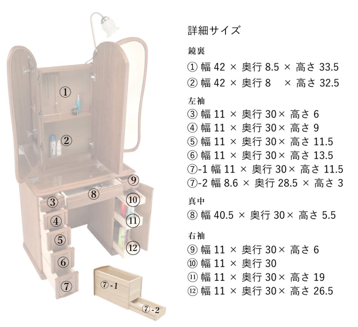 メーカー型番 ノーブル三面鏡ドレッサー
