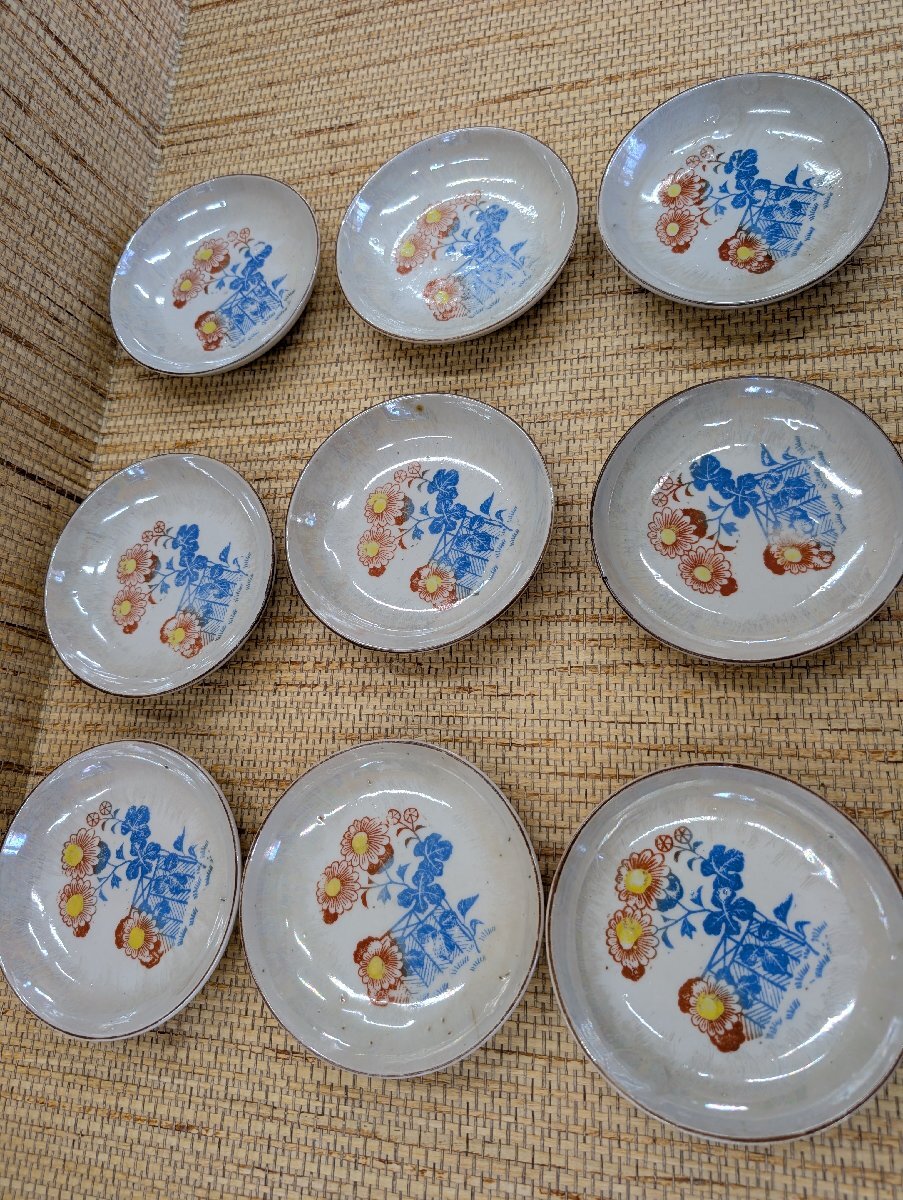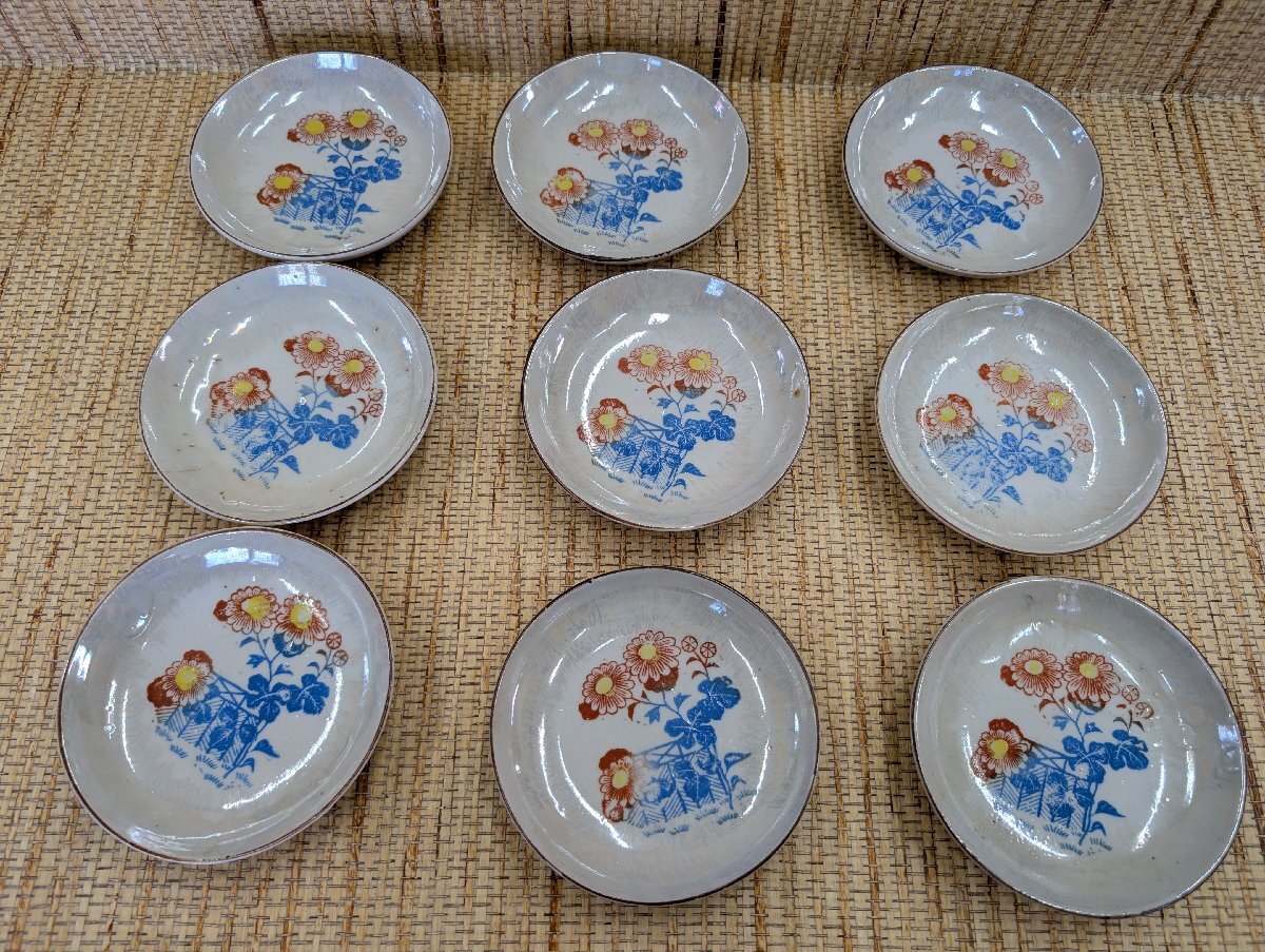 ①蔵出し 時代物 レトロ 銘々皿 オーロラ 花 花柄 小皿 9枚