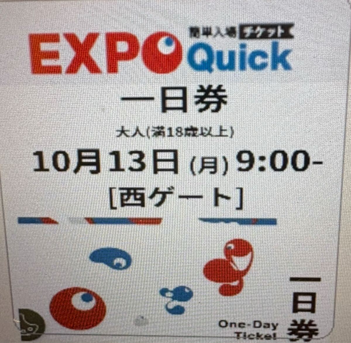 10月13日(月・祝)9:00入場(9時) 西ゲート 大人券(EXPO Quick)1枚