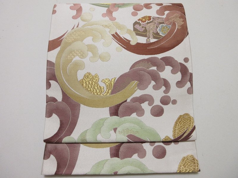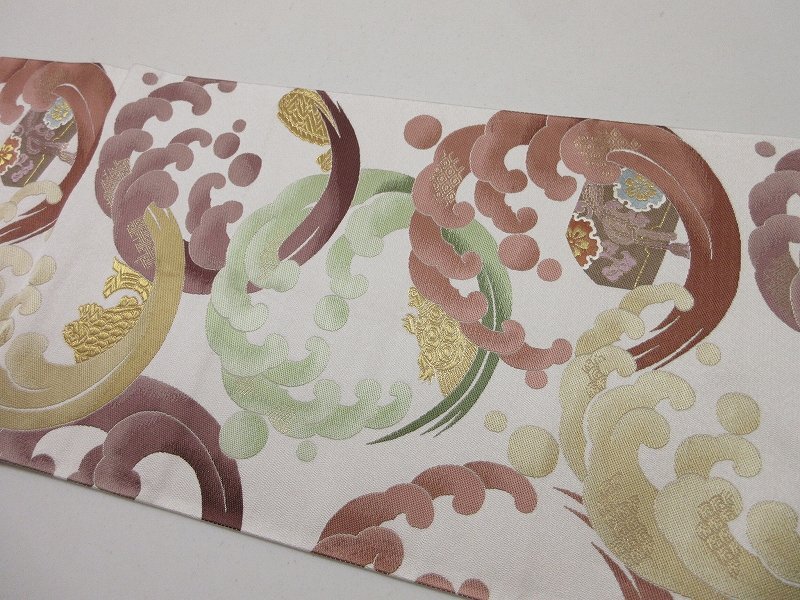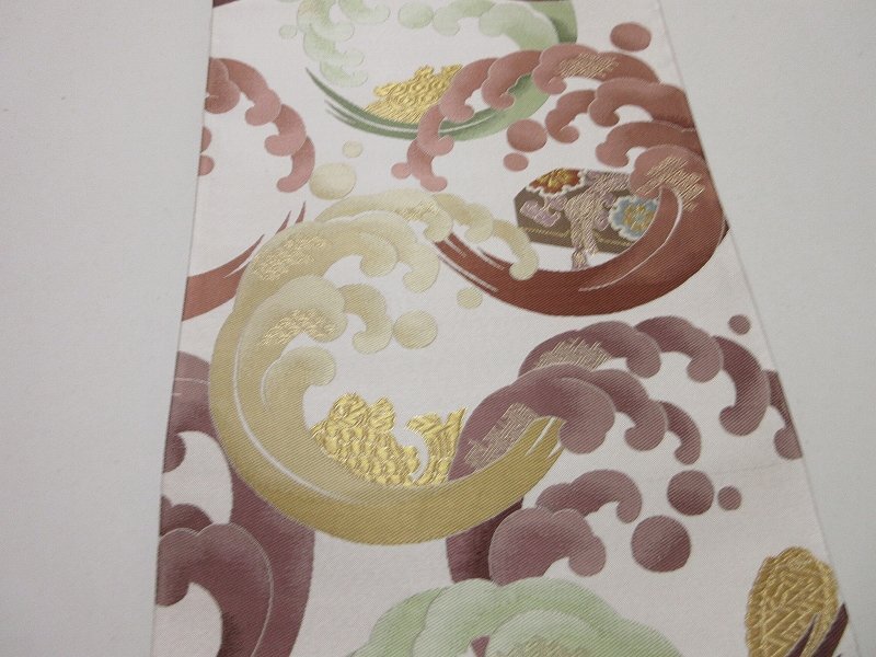 商品名 | ドークブア■六通柄袋帯 吉祥宝波文 白地 極上の逸品 ★ 615 |