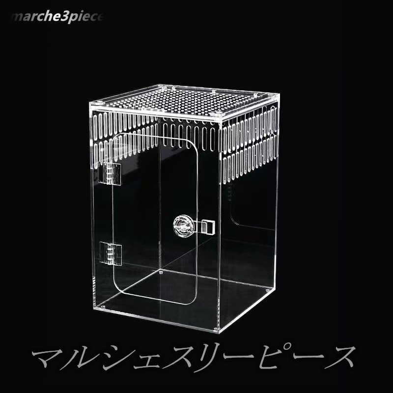 【高透明アクリル】 樹上性レプタイルケージ - トカゲ・クモ用 組み立て不要の観察ケース (初心者にもおすすめ)001