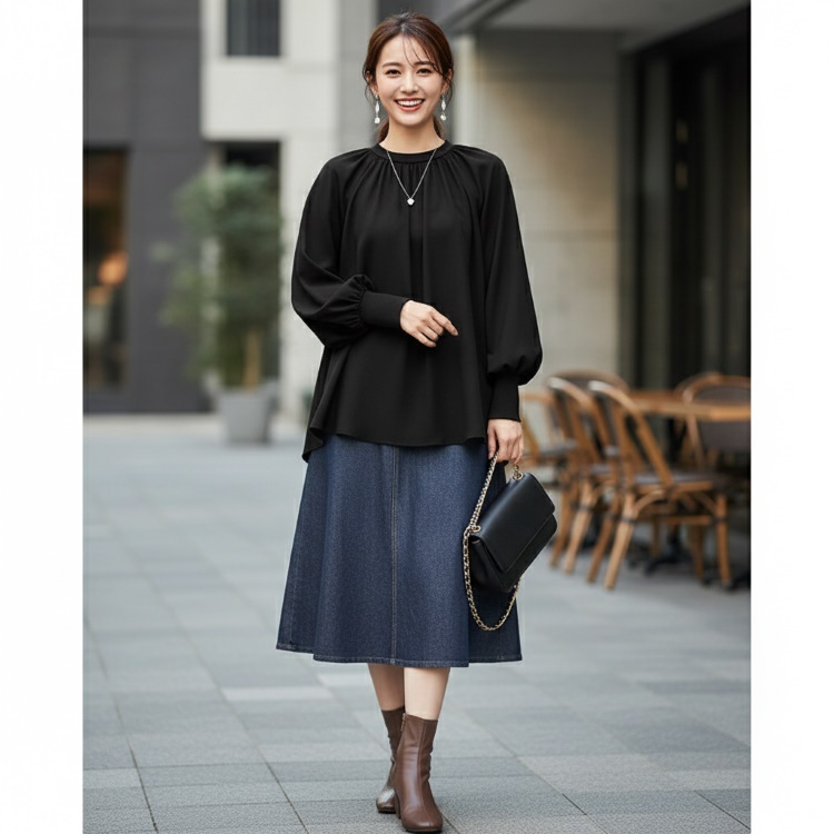 オフィスでのきれいめスタイルから、デニムやスカートと合わせたカジュアルダウンまで、幅広いシーンで活躍します