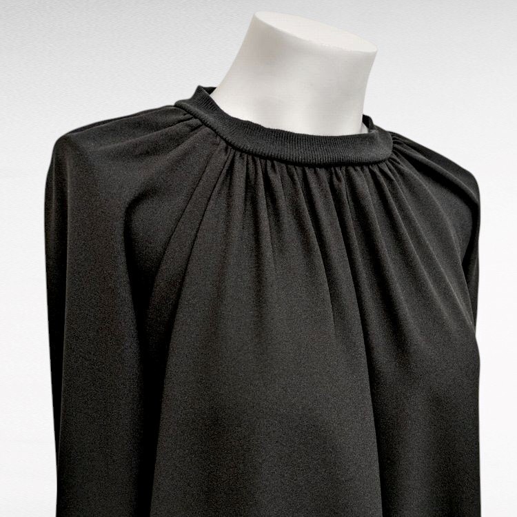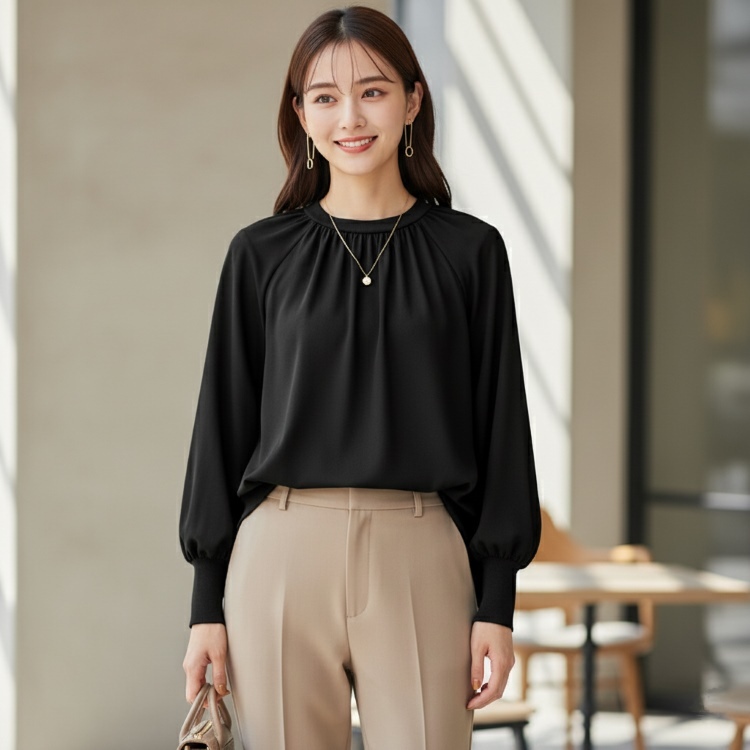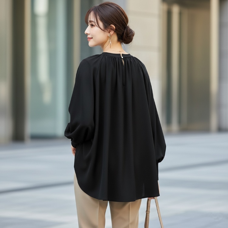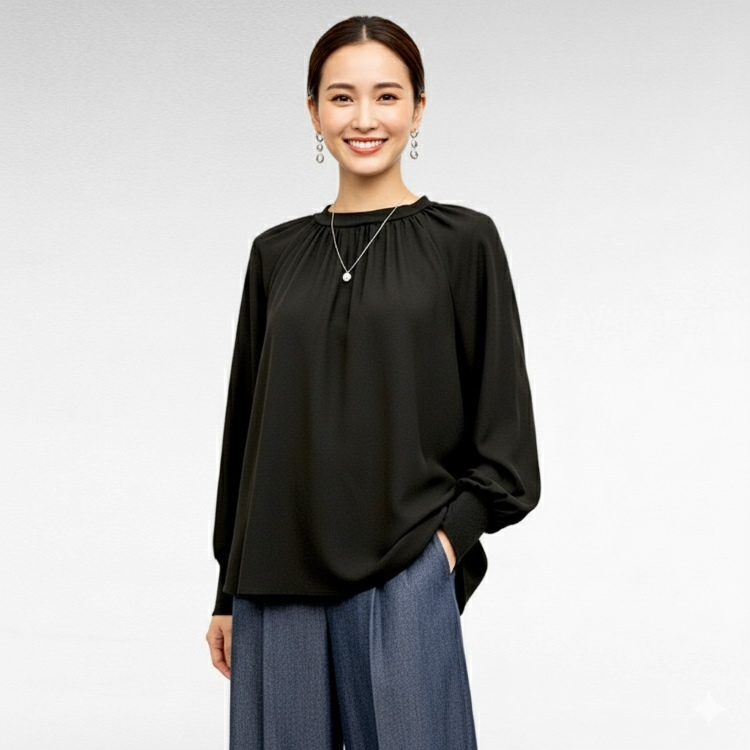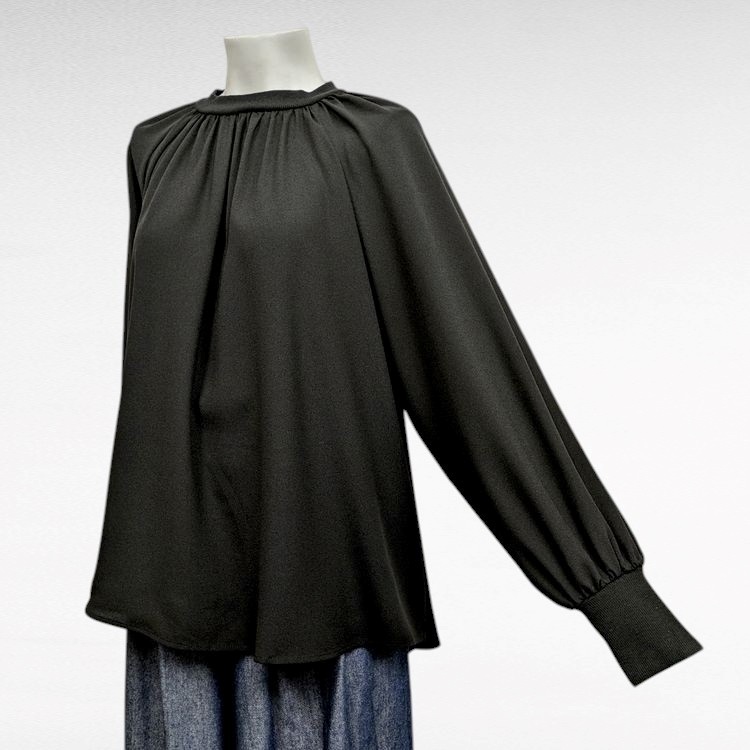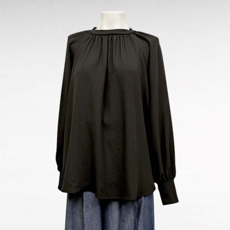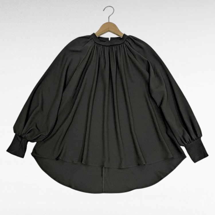 美シルエット ギャザーブラウス ラグランバルーンスリーブ L・ブラック 48521500