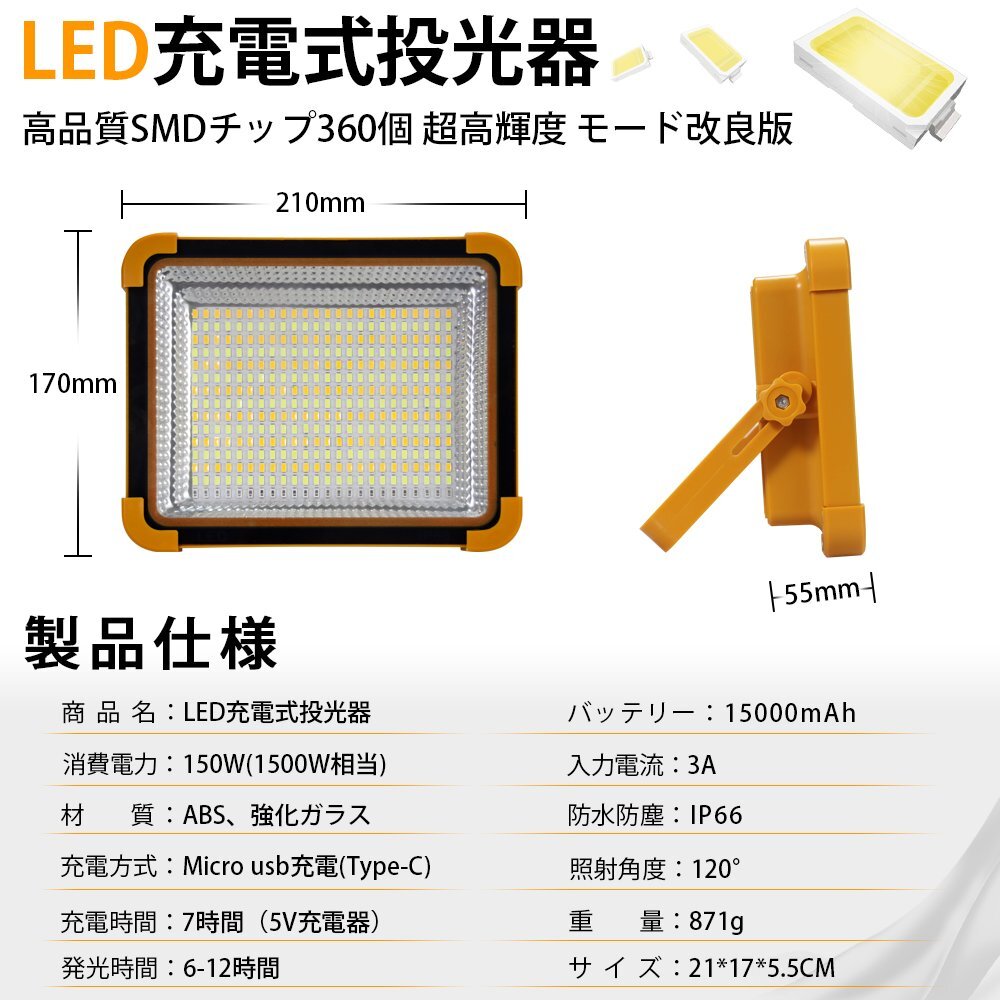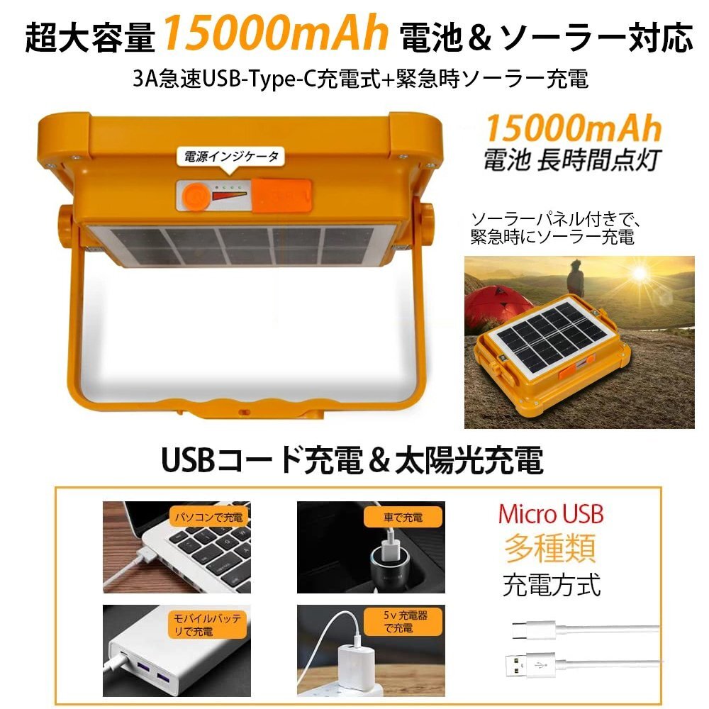 ◆進化版&5つ点灯モード: ライトは最新昇級版で、高輝度360個高品質SMDチップが搭載しています。 点灯モード:昼白色、黄色、100%自然光&長押して100%-0%自然光、50%自然光、赤青点滅モードが整備されています。 100W相当で、特別設計されたブラケットは180度回転できて、取っ手や吊り掛けとしても使えます。注)ライトは曝光の効果がありますから、点灯中の光源を近くで直視しないでください。 ◆USB充電&緊急時ソーラー充電: led投光器は15000mah大容量電池内蔵し、USB充電7時間でフル充電できて、6-12時間稼働できます。 USBポート付きまして、USBコード充電できます。ライトは大容量電池が内蔵して太陽光充電も可能なので、電気工事の時に、或は地震、台風などの災害の緊急時に停電してもライトは照明の機能が維持できます。 ◆IP66防水&耐久性: ライトはABSと強化ガラス材質で硬くて、耐衝撃性、安定性などの特性が優れています。 IP66防水防塵仕様で、全体はほこりの浸透を防止していて、湿気のある環境で確実な明るさを確保し、影響を与えないように処理しました、雨や雪にさらされても大丈夫です。低温や高温環境にも稼働できます。 ◆SOS信号&幅広い使用範囲: テント内の照明、夜釣り、バーベキュー、車中泊、日常使用、常備灯、地震対策、停電、アウトドア、キャンプライト、登山、防犯 、散歩、非常時などに大活躍です。緊急な時、赤青点滅モードをSOS信号灯として利用でき、どこでも携帯できる役立つなライトです。 【保証】 ◆当商品は12っヶ月保証となります。 ◆お届けから1週間以内にご連絡のあった不良品の保証対応の送料は当方が負担いたします。 ◆保証期間内の不良品ですが、交換のみ対応しております。往復送料はお客様負担となります。在庫がない時だけ返金しますので、ご了承ください。 |