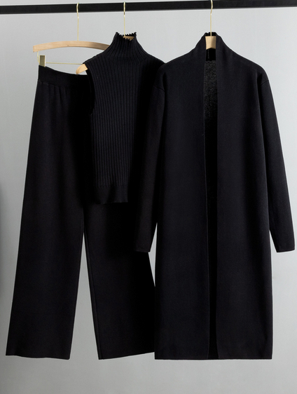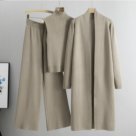 人気品パンツスーツ ladiesレディース 3点セット ニット 素敵 防寒 春秋 カーキ色 黒色 2色