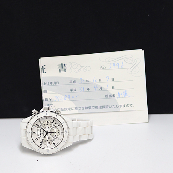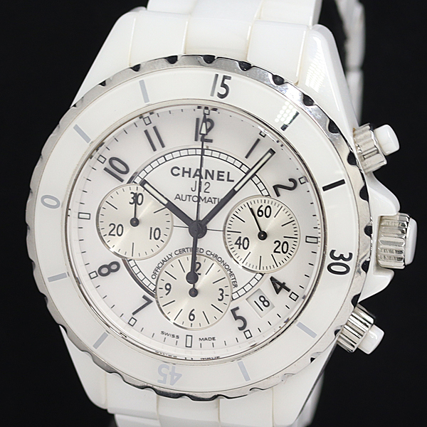 1円 保 稼働 シャネル J12 クロノグラフ H1007 L.G.45253 AT/自動巻 ホワイト文字盤 メンズ腕時計 0195030 10KHT SMZ