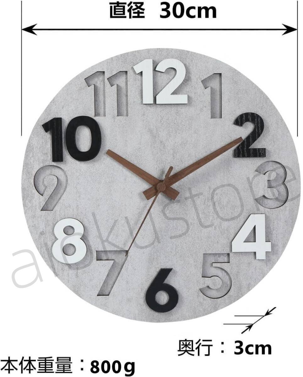 時計 壁掛け時計 北欧 おしゃれ 音がしない 3D立体数字 掛け時計 ウォールクロック クロックインテリア欧米風 見やすい 立体数字 直径30cm