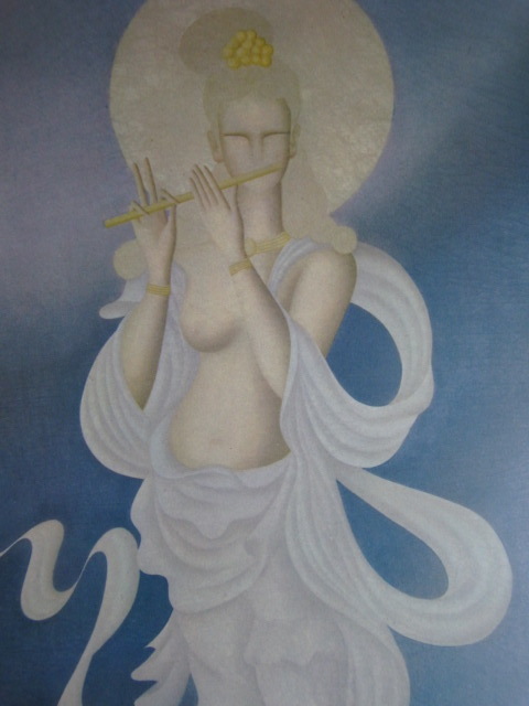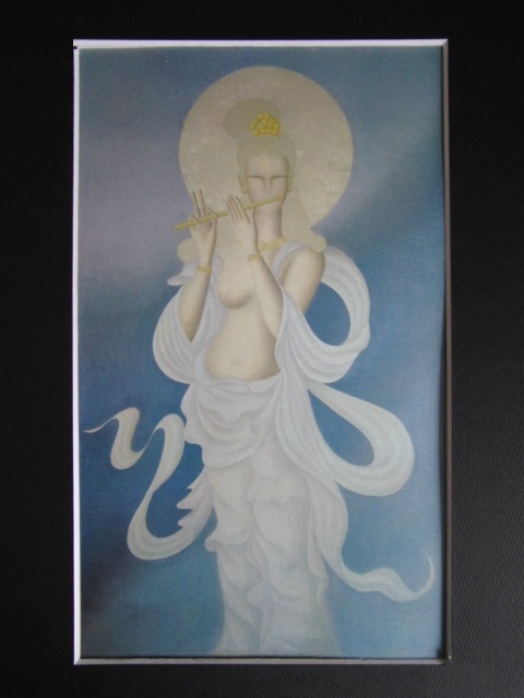 東郷青児、笛、希少な大判額装用画集より、状態良好、インテリア、巨匠、美人、天女