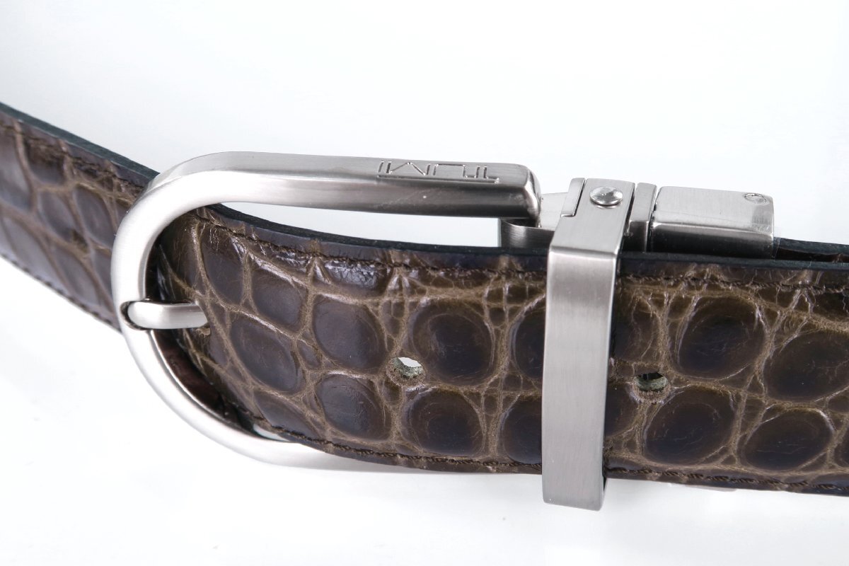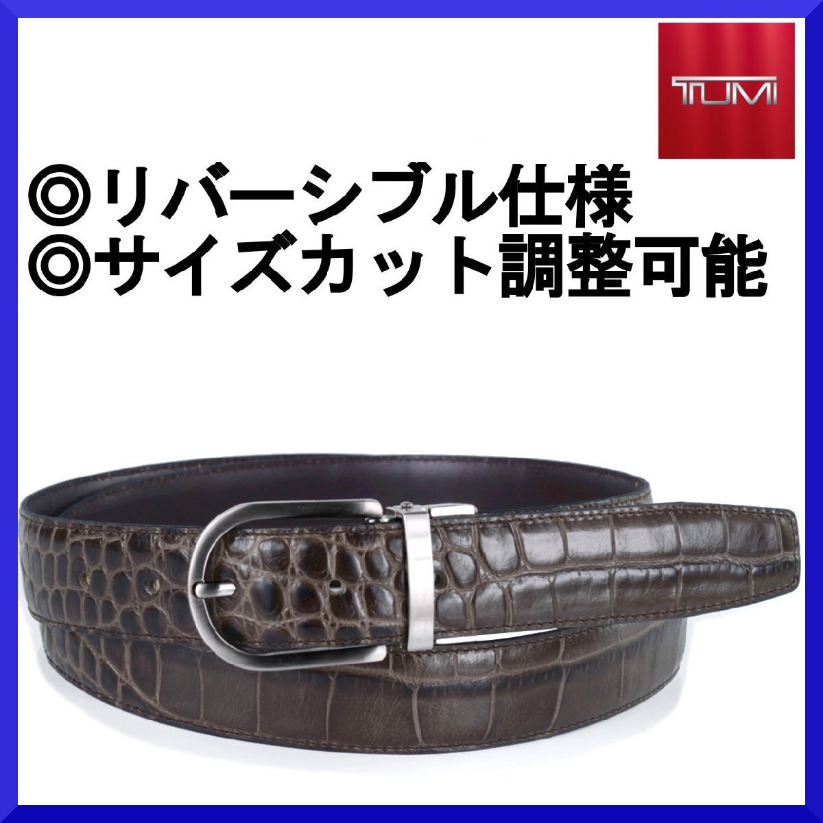 新品本物トゥミTUMI【装い華◎クロコダイル型押し本革レザー】リバーシブル!!カット長さ調節OK!!ベルト/メンズ/ビジネス/デニム/【40/100】