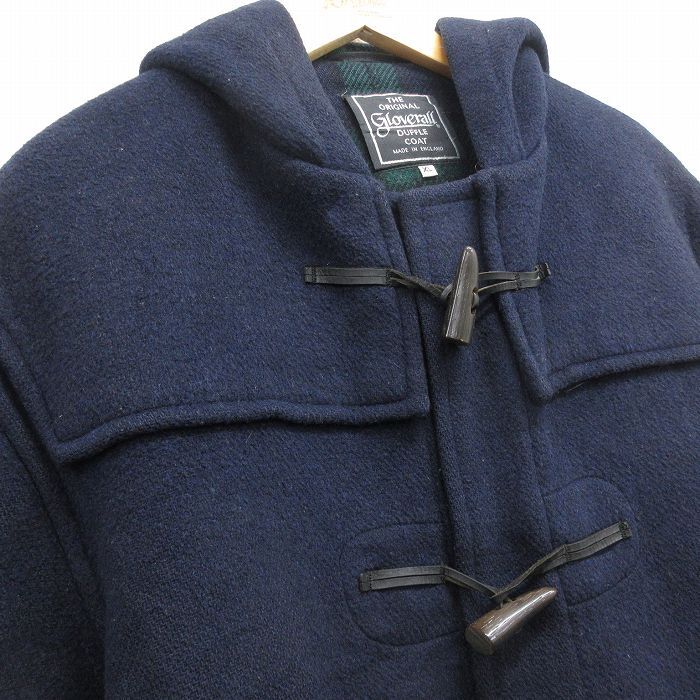 【商品名】 XL★古着 グローバーオール 長袖 ウール ダッフル コート メンズ 大きいサイズ ロング丈 イングランド製 紺【spe】
