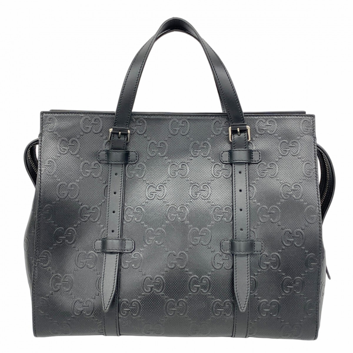 【5mb1471-h】グッチ ハンドバッグ GGエンボス 625774 レザー ブラック シルバー金具【中古】メンズ