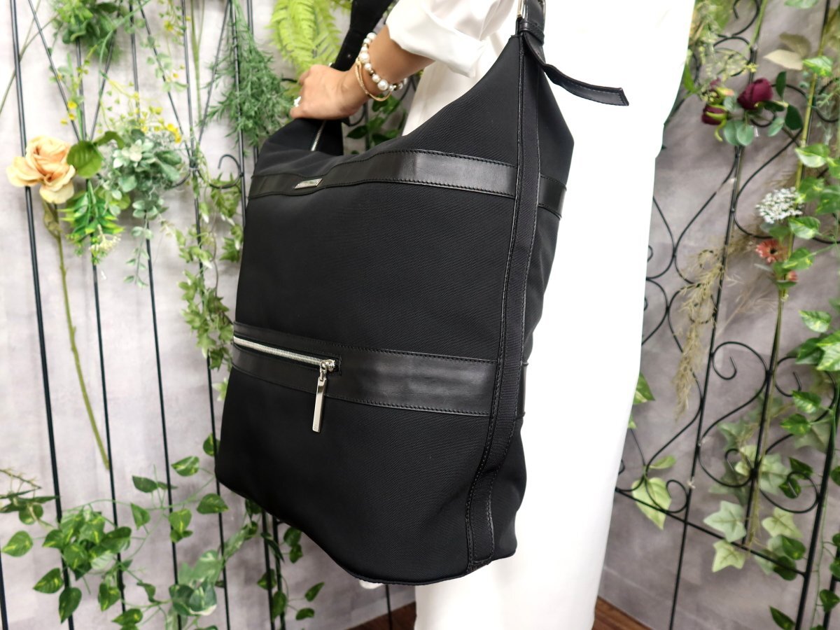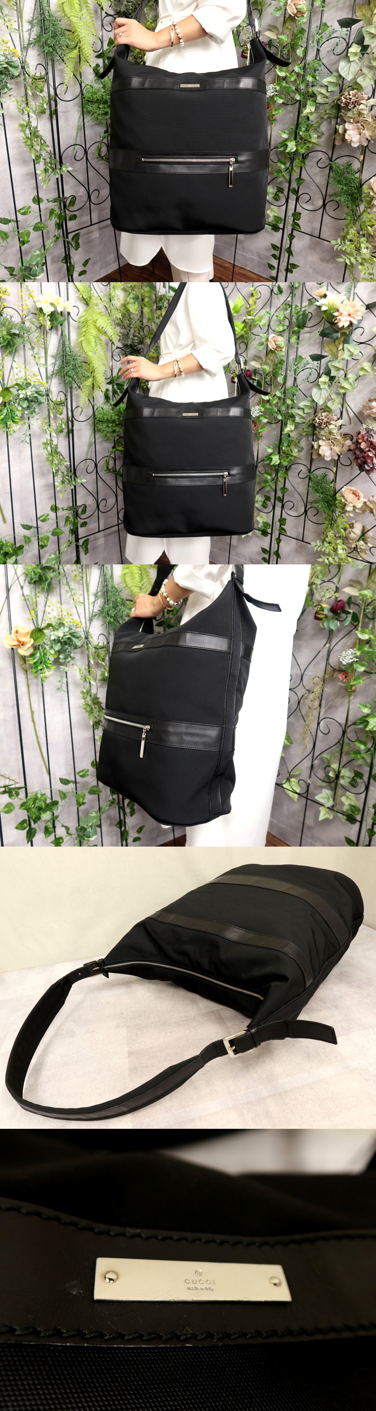 ●超美品●GUCCI グッチ●メンズ●キャンバス カーフ レザー 本革●ショルダー バッグ●黒●シルバー金具●肩掛け●イタリア製●Js61122