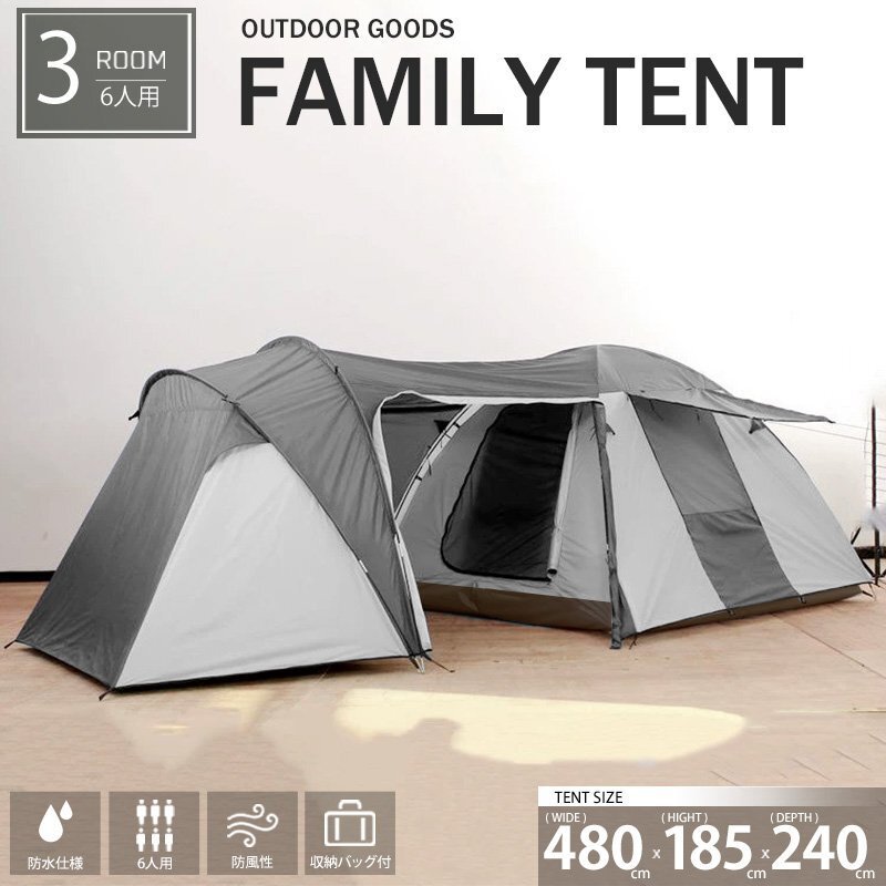 大人4人分の就寝スペース1部屋と2人分の就寝スペース、そしてリビングスペースを備えた計3ルームテントです! 本格的就寝スペースとリビングスペースの3ルームが設営でき、 グループやファミリーにおすすめの一台です。 広々としたリビングスペースにはチェアやテーブルなどを配置できます! メッシュ小窓付き! テント内にはスマホやペットボトル等が収納できる、収納ポケットがついています 突然の雨でも安心。耐水圧分3000mmの 防水加工が施されており 多少の雨でも安心してご使用いただけます。 持ち運びや収納に便利な専用バッグ付き。 【商品仕様】 カラー:グレー 持ち運び用バッグカラー:ブラック 全体サイズ:横240cm×高さ:185cm×奥行き480cm リビングスペースサイズ:横240cm×奥行き120cm 6人分テント内寸サイズ:横240cm×奥行き230cm 2人分テント内寸サイズ:横240cm×奥行き130cm 収納時サイズ:横75cm×高さ17cm×奥行き17cm 定員:6人(1部屋4人:2人) インナーテント素材:190T フライシート素材:210T フロア素材:210D 重量:5.5kg 【商品内容】 ・本体 ・持ち運び用バッグ ・固定具(袋、ペグ、ロープ) ※ハンマーは付属しておりません。 ※本製品は撥水加工を施しておりますが、雨量によっては浸水することがあります。 大雨、豪雨など、雨量が多い時のご使用はお控えください。 ※こちらの商品は説明書が付属しておりません。画像欄に載せておりますのでそちらからご覧ください。 ※広げる時は周りに人がいないことや障害物のないことを確かめて広い場所で広げてください。 |